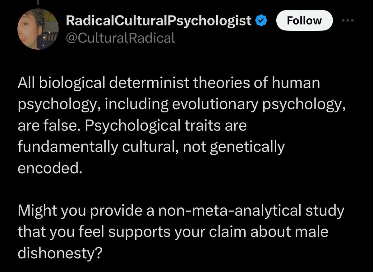 @datepsych @datepsych "overwhelming consensus" in psychology? Seems contrary to your tweet from ~1 year ago: "Only about half of social psychologists believe that Darwinian evolution applies to the human mind." x.com/datepsych/stat… Has consensus shifted rapidly or am I missing smth?