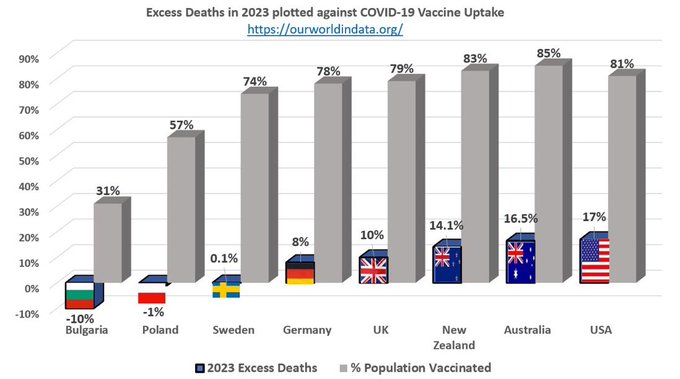 #Periklesdepot If you get the Covid VACCINE you are MORE LIKELY To DIE Uptake of Covid Vaccine means MORE "Excess Death" across many countries in 2023. See Bulgaria, Poland & Sweden Many Advanced countries have completely stopped Covid VACCINE for young healthy People. Why has USA been a LAGGARD?