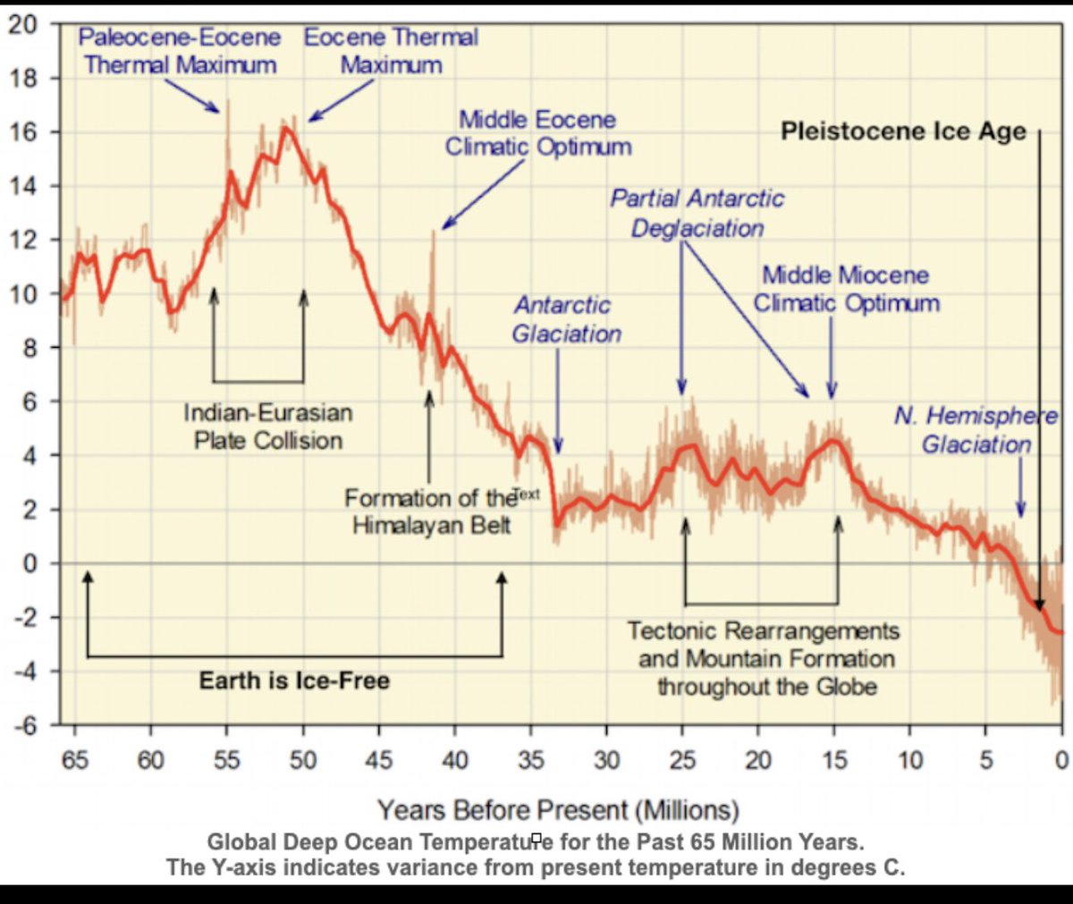 The Age of Mammals (the Cenezoic) lasting 65 million years reveals no connection between temperatures & carbon dioxide in the atmosphere. Temperatures have been falling & earth has been in an ice age for 2.58 million years. It shows how absurd the climate change hoax really is. https://t.co/MygwjaFm3C
