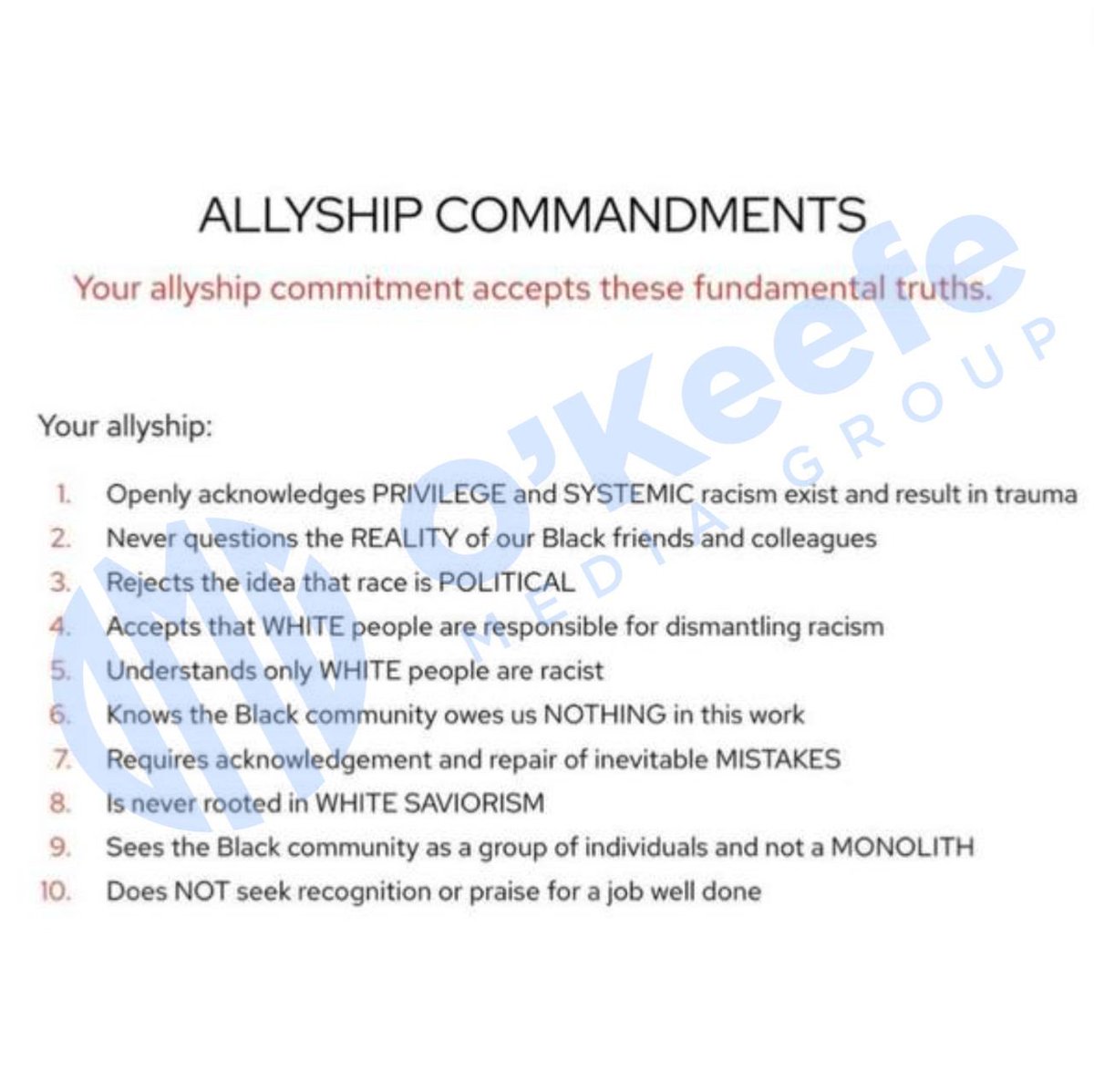 BREAKING: OMG obtained an internal document from @IBM ‘s RedHat that reads like a religious text: The "Allyship Commandments" are 10 race-based rules employees must observe. One commandment states “only white people can be racist” Another states, “Accepts that WHITE people are responsible for dismantling racism" From a different section: “Whiteness constructs the game, hides the rules, then rigs the game, over and over again.”