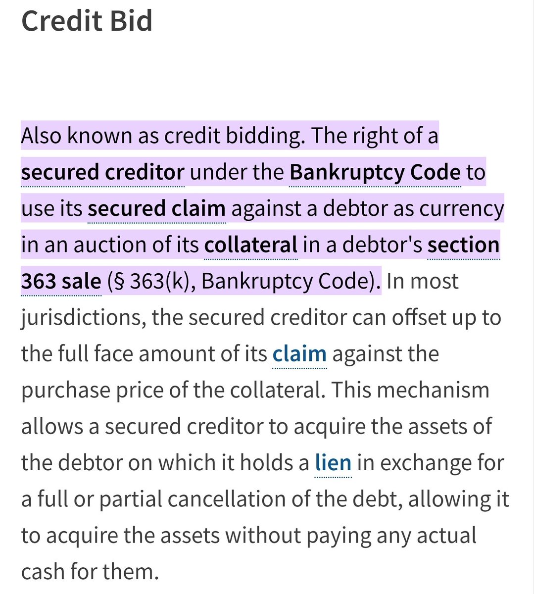 A credit bid is for secured creditors to use their secured claim as currency in an auction. The auctions were in June & July and we already know the outcomes. Overstock and Dream on Me acquired the IPs. Dream on Me is keeping their name and using the Buy Buy Baby name in addition - therefore the BBBY LLC