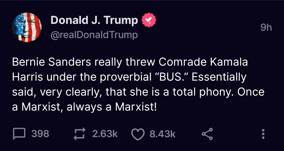 Part 3) 🤯 Trump capitalized and quoted "BUS" 👀👀👀👀👀 https://t.co/cxbK61FKBr