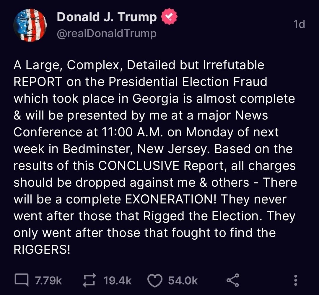 9) And the final nail I'm the proof you are watching a show coffin. Trump truths this. https://truthsocial.com/@realDonaldTrump/110882321735123573