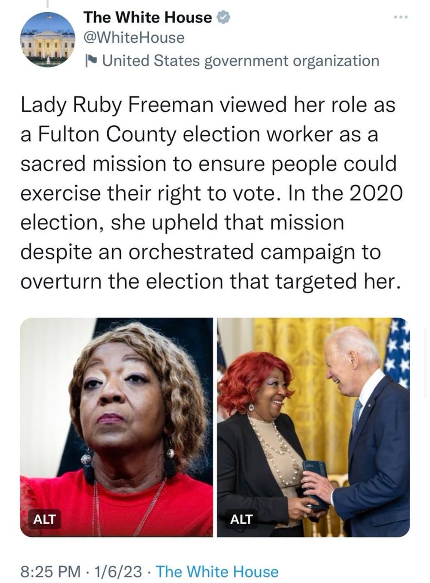 1) THREAD. Absolute proof Ruby Freeman is caught and being cast as part of the show. First of all, notice the capitol police officer we have seen being cast so many times, including J6. Second, Ruby is being given a metal of honor by the fake Joe?! 😆