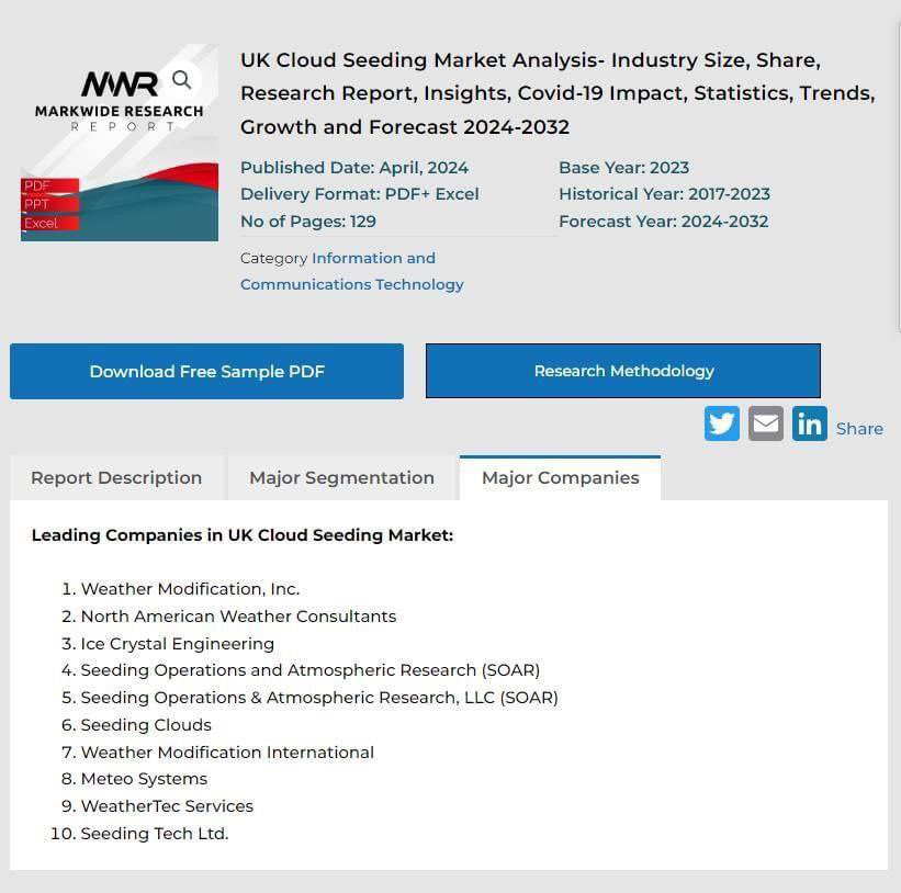 Here's a list of the top 10 leading companies in the UK Cloud Seeding Market. The report (link below) looks at future growth. Lots of money to be made through manipulating Natureπ€¬ Yet another 'conspiracy theory' is proven correct β #Cloudseeding https://markwideresearch.com/uk-cloud-seeding-market/