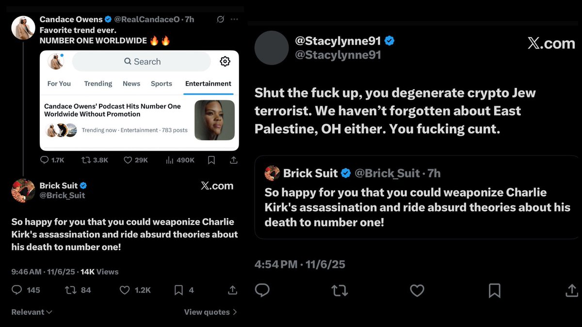 @RealCandaceO So happy for you that you could weaponize Charlie Kirk's assassination and ride absurd theories about his death to number one!