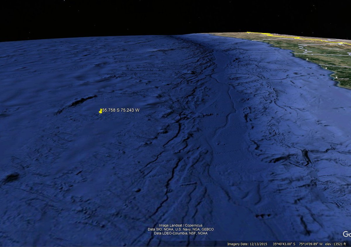 The buoy in question located at: 35.758 S 75.243 W (off the west coast of Central Chile / Conception area) The location is 4114m deep (13,500feet) It dropped by over 2000m or 6000ft and then cut out , no more information. https://t.co/RsC9y2ndBS