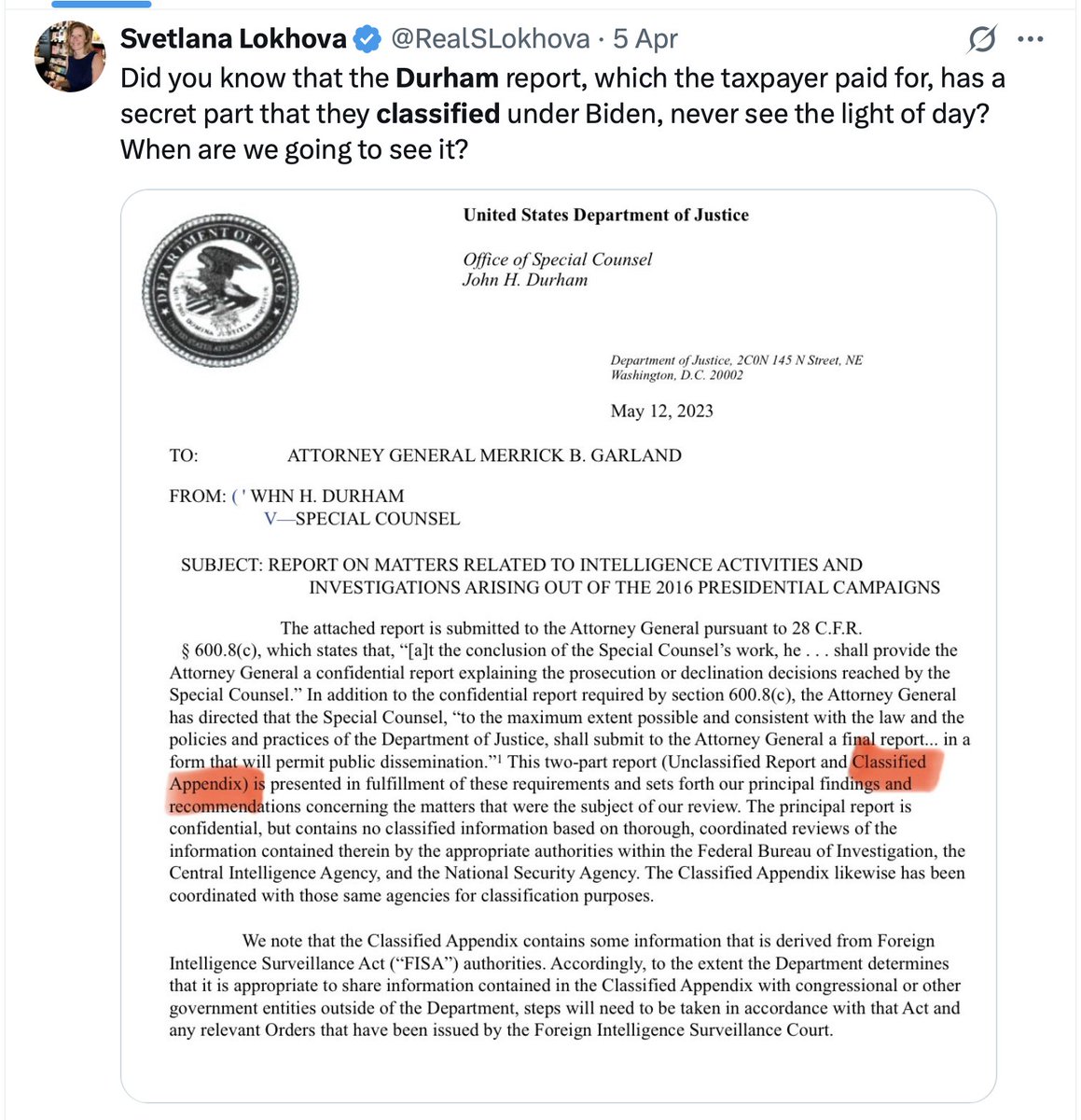 Dear Director @DNIGabbard please can you release these documents, someone is still hiding them. I was right about the importance of the Durham Annex, so trust me to know what I am talking about. We must have these documents, the most important one, Brennan notes of briefing Obama and Comey on the Hillary Plan is 9 years old. Obama's full response re Hillary plan is still redacted. Comey's response is completely redacted, I believe they are talking about opening FBI cases on Trump advisors based on what Comey told IG Horowitz. The documents I list are all unclassified or declassified so they cant do their sources and methods bs excuses. I arranged them by priority, we MUST have the first lot now. Please please. -unredacted notes of the Brennan meeting with Obama and Comey, Aug 3, 2016 -Inspection Division Report criticizing the FBI for Crossfire Hurricane -14 missing pages of the Durham Appendix -Hillary Clinton, John Brennan, Stefan Halper, Alexander Downer, Jake Sullivan, Podesta, Mook et al. interviews with Durham -Durham referrals incl. to the Department of Defense etc -Emails between the New York Times, Washington Post, etc and Fusion GPS, and Fusion GPS with Hillary Campaign -Emails/communications between head of British Intelligence Richard Dearlove, US intelligence and Halper and Steele -Interviews of members of staff who accompanied Gen Flynn on the trip to England and witness the op against him