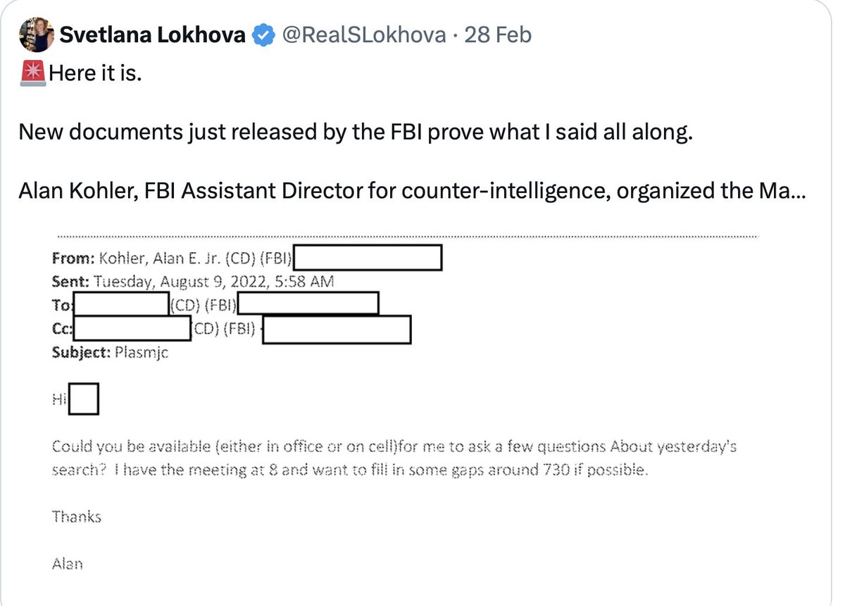 Mike @mrddmia: A good article pointing out that the Mar-a-Lago Raid was illegal. But it's a lot worse. The FBI knowingly did the illegal Raid to snatch Crossfire Hurricane documents which directly implicate Obama, Hillary, the CIA and the FBI. I have been saying for years, based on my own evidence, that the FBI Assistant Director for Counter-Intelligence Alan Kohler organized the Raid. It has now been confirmed (see attached). Kohler did the Raid on the orders of Christopher Wray and Lisa Monaco, an Obama crony who effectively ran the Biden DOJ with Maggie Goodlander, Jake Sullivan's wife (a top Hillary advisor). Also involved was Avril Haines, Brennan's former Deputy Director at the CIA, who was made Director of National Intelligence under Biden. The purpose of the Raid was to seize and hide the Crossfire Hurricane documents showing that the CIA, the FBI, and British intelligence coordinated anti-Trump ops out of England. President Trump declassified the documents, but Wray's FBI, Monaco (Obama), and Haines (Brennan) had them retroactively reclassified before the Raid, and then falsely accused President Trump of holding and distributing classified documents endangering spies and operations. In fact, the documents endangered the Deep State, showing that Stefan Halper and Christopher Steele, on Obama's orders, falsified "intelligence" about Donald Trump and his team to stop him from becoming President and then in an attempt to overthrow him. Alan Kohler, the man who organized the Raid, was previously the head of FBI London Station, working with Gina Haspel, the head of the CIA London Station. Kohler ran Christopher Steele and Stefan Halper, the two "Confidential Human Sources" on the Crossfire Hurricane anti-Trump FBI op. Steele worked for Richard Dearlove, former head of MI6 (British CIA), and Dearlove is friends and business partners with Halper, a CIA operative who worked for Brennan and Haspel, as well as for the FBI. Halper is MITCH in Comey's notes, the guy in charge of the Hillary Clinton Plan to tie Donald Trump to Russian intelligence. Obama ordered this operation, and both Halper and Steele were paid a lot of money by the Obama administration. The CIA, the FBI, and British intelligence implemented it. That's why Kohler, Monaco, and Haines had to remove and hide the evidence.