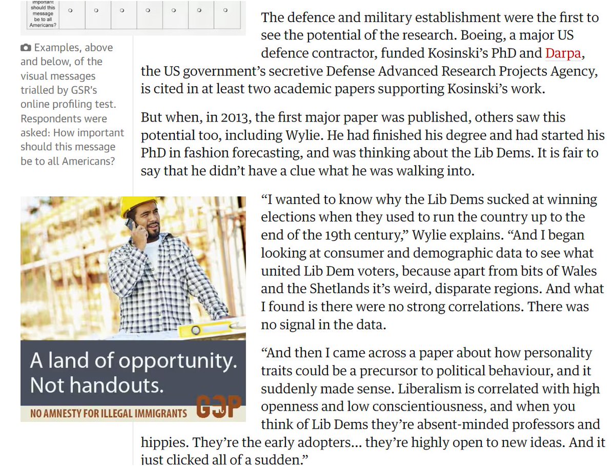 This research, which involved building the groundwork for the future psyops to be preformed on the American people (and the world), quickly caught the eyes of the US defense and military establishment. Boeing was the main source of funding and support of Michal Kosinski’s projects. “Boeing, a major US defence contractor, funded Kosinski's PhD and Darpa, the US government's secretive Defense Advanced Research Projects Agency, is cited in at least two academic papers supporting Kosinski's work.”