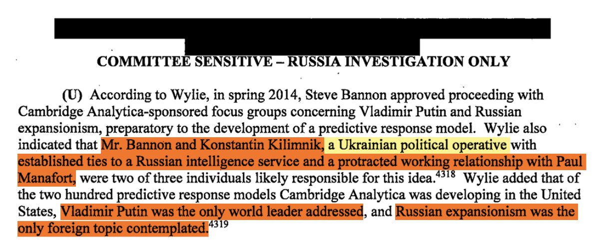 To prepare the development of a predictive response model, Bannon along with Ukrainian and Russian political/intel operative Konstantin Kilimnik developed a working relationship with Paul Manafort. The main target of Cambridge Analytica’s predictive response model was Vladimir Putin.