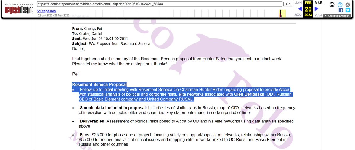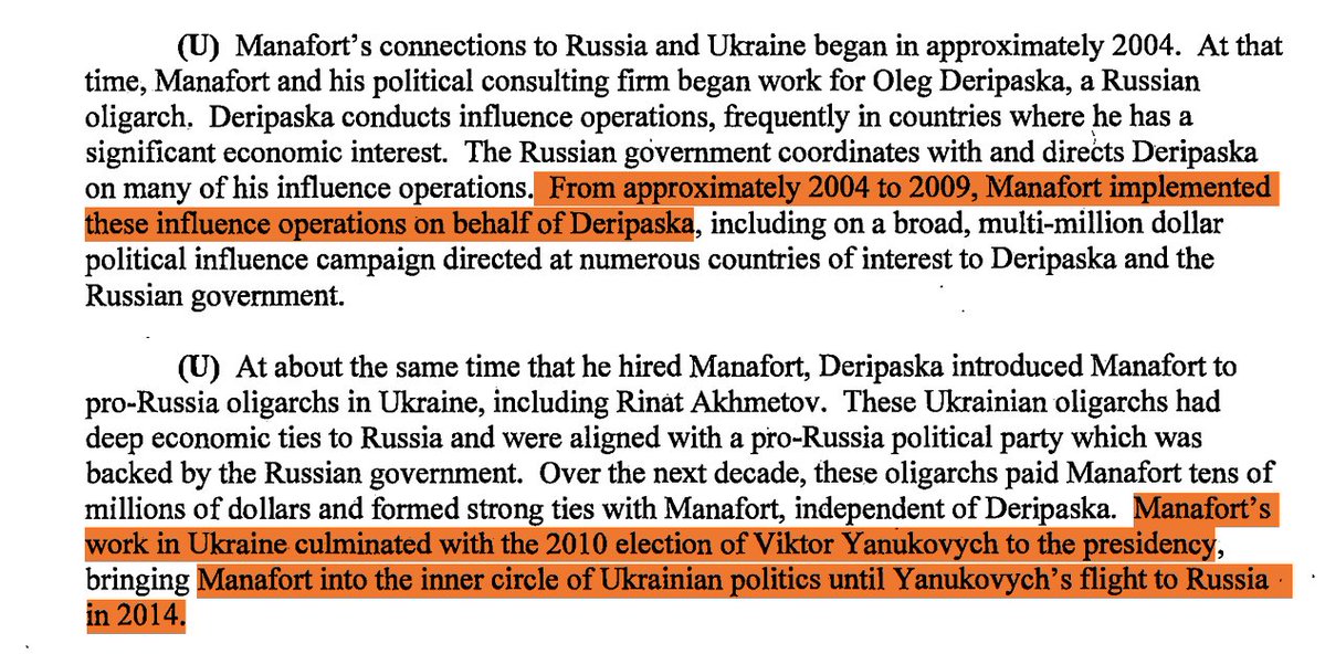 In 2011, another CEFC affiliate - Rosemont Seneca, Co-Chairman - Hunter Biden proposed to provide a company called Alcoa with statistical analysis of political and corporate risks, elite networks associated with Oleg Deripaska (Russian CEO of Basic Element company and United Company RUSAL). Deripaska is responsible for many major influence operations, often tied to his economic interests, with coordination from the Russian government. Between 2004 and 2009, Paul Manafort executed these operations on Deripaska's behalf, involving a multi-million dollar campaign across various countries. Simultaneously, Deripaska introduced Manafort to pro-Russia oligarchs in Ukraine, leading to lucrative ties and Manafort's involvement in Ukrainian politics until 2014.