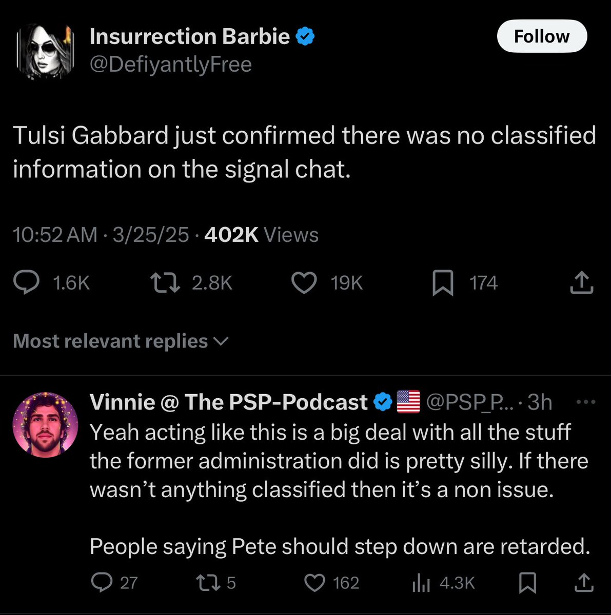 Okay, here’s the core issue with this Signal debacle. I waited 24 hours to do a write up on this and seeing how big accounts from a certain side trying to brush it off are either misunderstanding the issue or deliberately trying to pretend is a non-issue. Common theme has been, “if it’s not classified, it’s a non-issue issue” are completely misunderstanding the principles of federal records data retention, chain of custody and transparency in big brother operations. Even unclassified comms are subject to scrutiny if they involve government business period to include off the record platforms, in this case the Signal app. Just because the dems have had a free range and gotten away from accountability doesn’t mean “we” should do the same. If we can’t enforce government record keeping laws and federal records act then what’s the point in having them? The whole point of this is to preserve comms oversight, historical records, and legal accountability. X is flooded with the “former admin did worse” is pure deflection and not defense. We can’t use “well it wasn’t as bad” as a metric for wrongdoing and or incompetence. Just because the accountability bar is so low it doesn’t mean it should be optional. Do you see the issue? Parties involved need to own this clusterF and revamp their amateur OPSEC.
