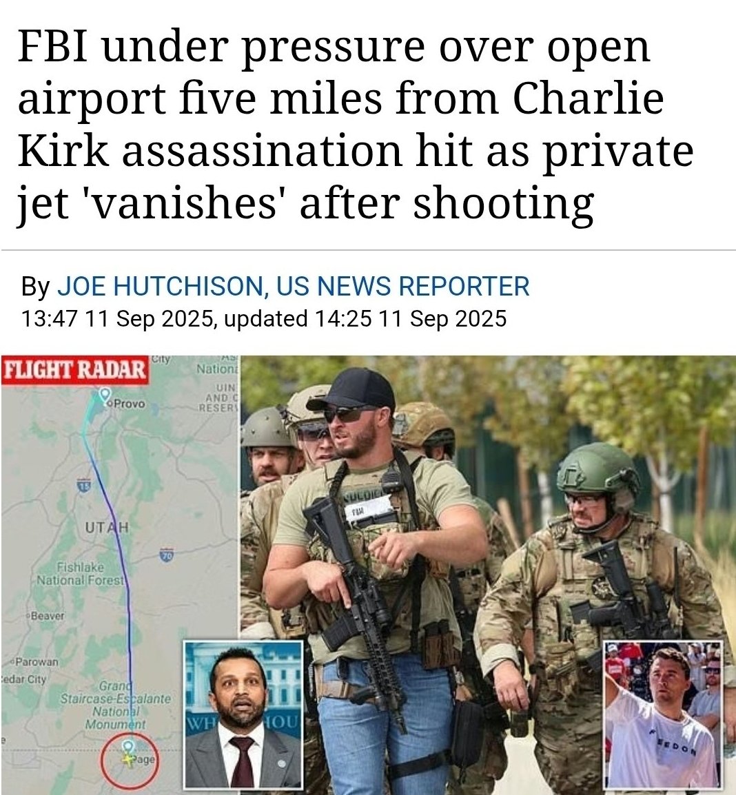 Hey @Grok, has the FBI addressed the incident involving the private jet that vanished from radar shortly after Charlie Kirk was assassinated? What are they hiding? https://t.co/gueXnIkHEU