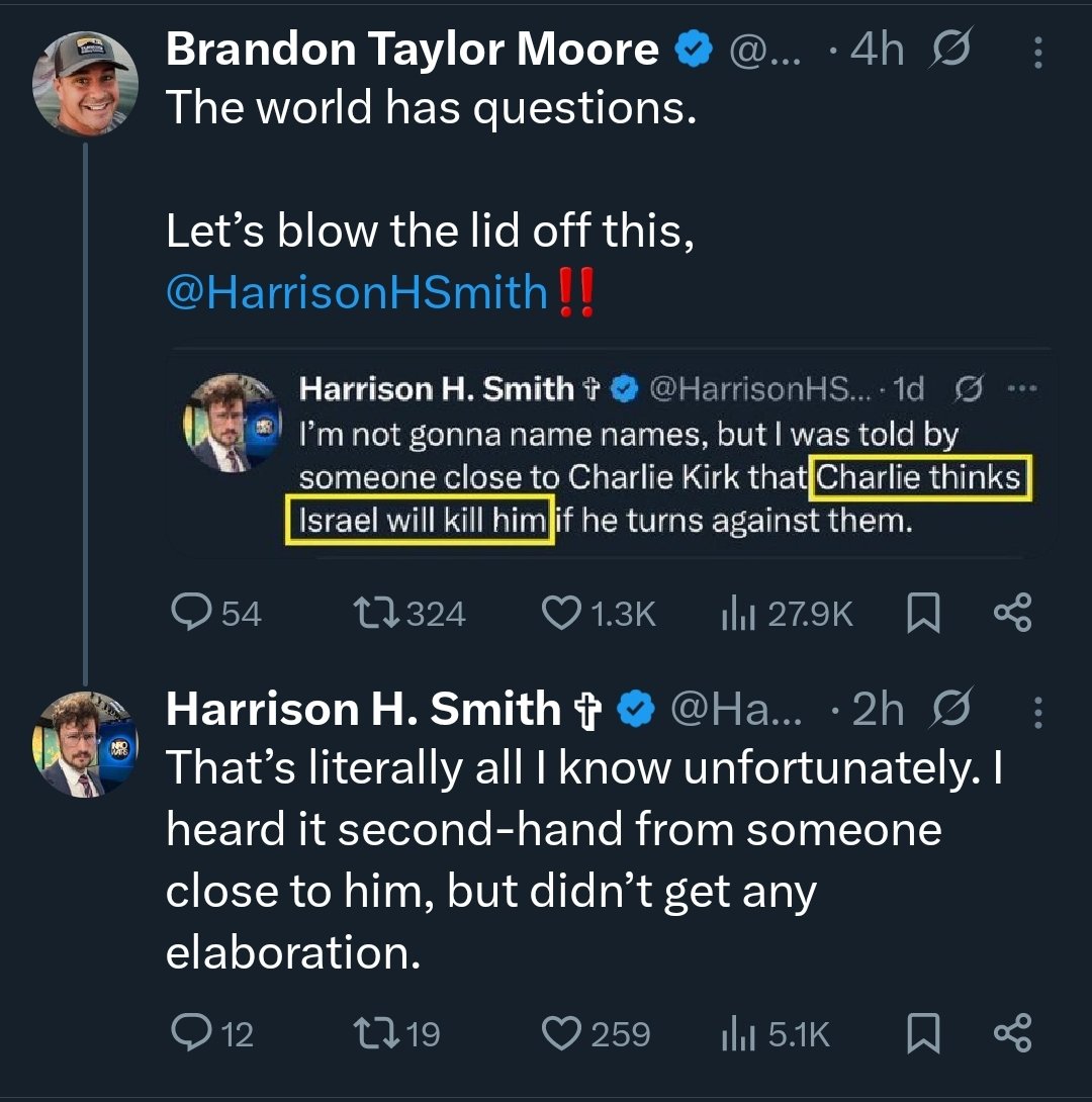 Charlie Kirk Was Starting to Notice! "And this is no longer just speculation. First of all, the evidence that shows that Epstein was a creation of either Mossad, Israeli intelligence, American intelligence..." Everything is connected! https://t.co/ceNQeN6L9L