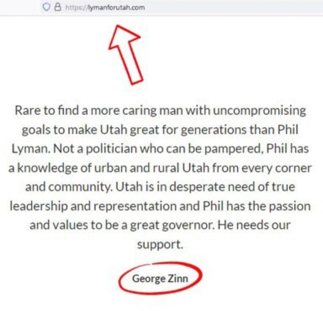 🚨NEW GEORGE ZINN CONNECTION🚨 George Zinn, the individual who falsely claimed "I shot him; now shoot me!" right after the assassination of Charlie Kirk and later admitted his statement was an intentional deception to divert law enforcement and allow the actual shooter to flee, has been revealed as a supporter of Utah State Rep. Phil Lyman. A testimonial from George Zinn appears on Phil Lyman's gubernatorial campaign website. (I have a screen recording in case it is removed.) Additionally, a photo has surfaced showing George Zinn attending a Phil Lyman campaign event. This indicates George Zinn's connections run deeper than initially apparent, raising questions about potential ties to broader networks. Credit for the discovery: @FeeFiFoFum1995
