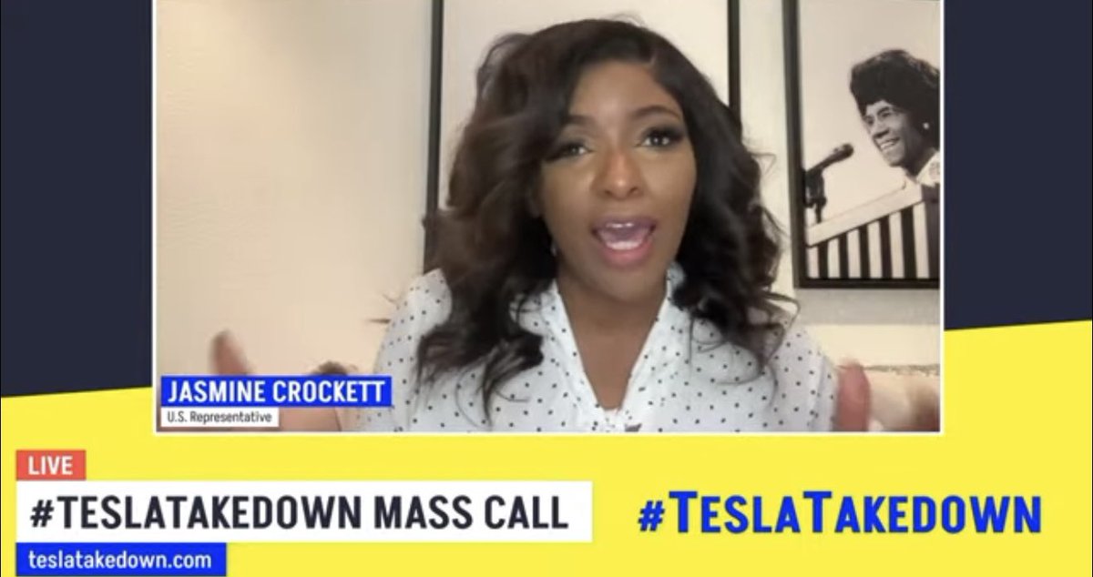 Tonight, I saw an entitled Jasmine Crockett with a new Capitol Police escort walking through the already protected halls of Congress. This comes, after today, she assaulted an independent journalist who was asking if she condones violence against Tesla. Crockett recently said her birthday wish was to take down Elon Musk and has fueled domestic terrorism against Tesla, Tesla owners, and Tesla employees. She physically threatened Senator Ted Cruz and shamefully made fun of Gov Abbot being in a wheelchair. But SHE apparently needs a Capitol police escort to protect her while she made her male staffer carry her designer handbag. Jasmine Crockett is the face of the Democrat party. And rightfully so.