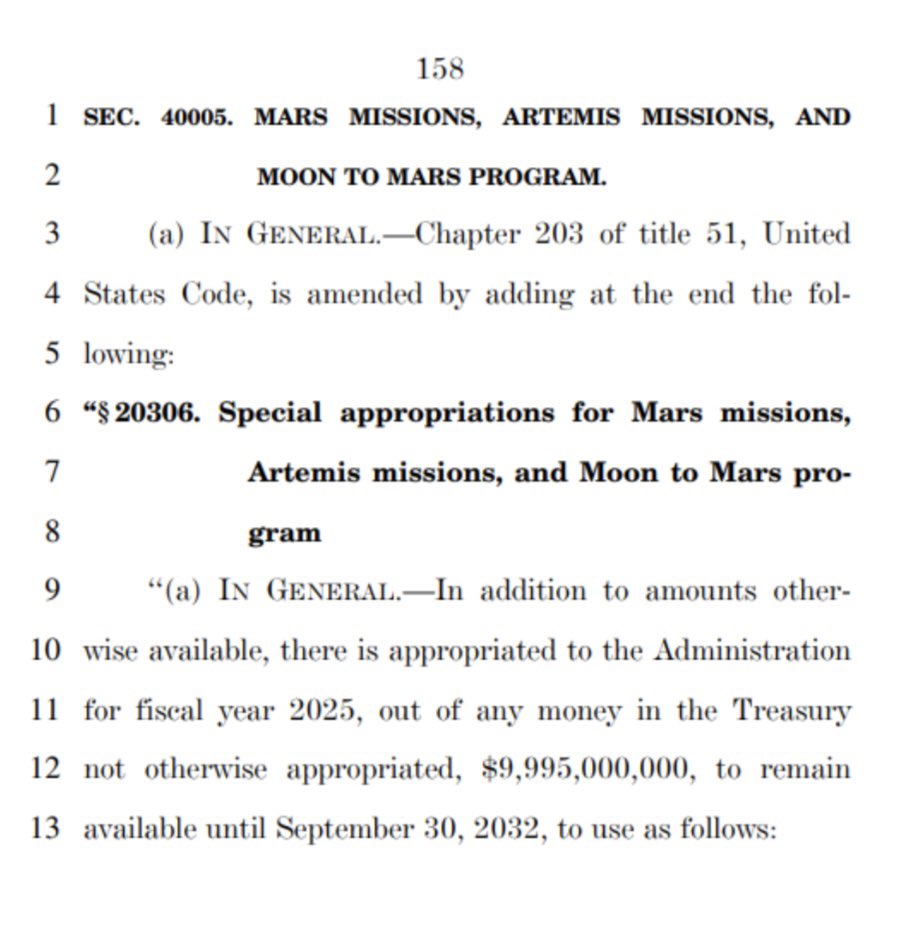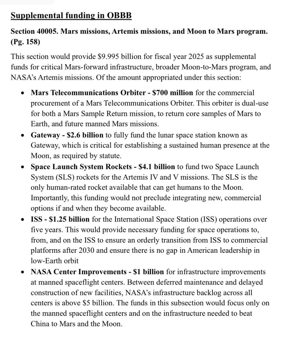 Creating a thread today of OBBB contents. I’ll continue to add. $9.995 Billion for Moon to Mars program. https://t.co/UxBSLUDbnZ