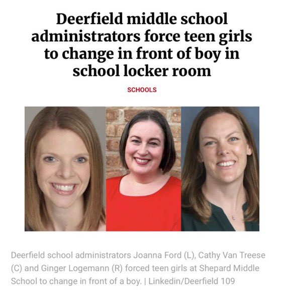Female administrators barricaded girls in a locker room after they expressed their discomfort with undressing in front of a boy. She literally stood guard in front of the door so they couldn't leave. This is sexual abuse and exploitation of minors. Ahem, @FBI... https://t.co/BF59rEtiuZ