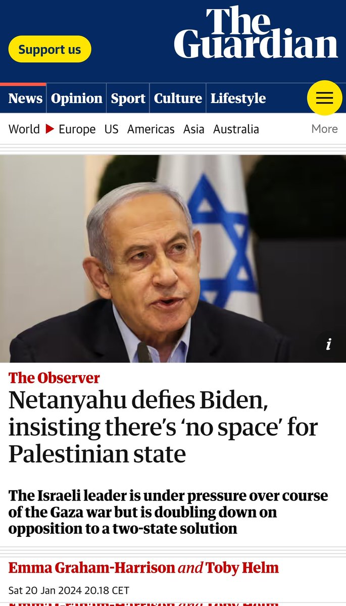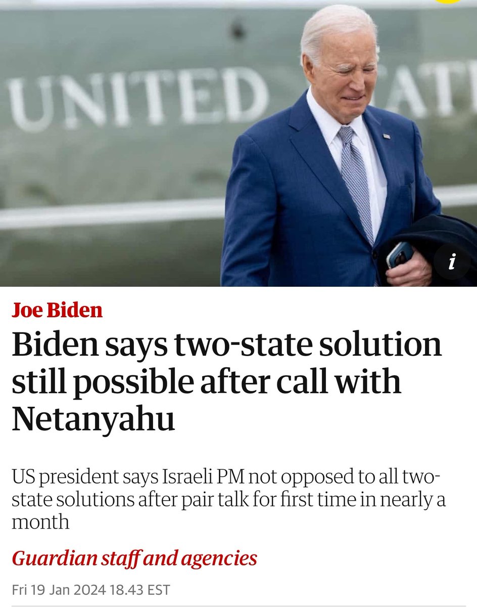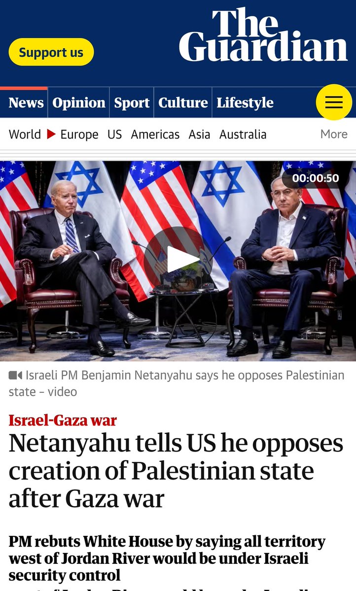 This journalist 👇 yesterday told Biden "Bibi said he's opposed to any 2-state solution" and Biden replied "no, no, he didn't say that!". It's frankly incredible how Biden is either utterly delusional or even more dishonest than Netanyahu himself. https://t.co/UrdRpK1F01