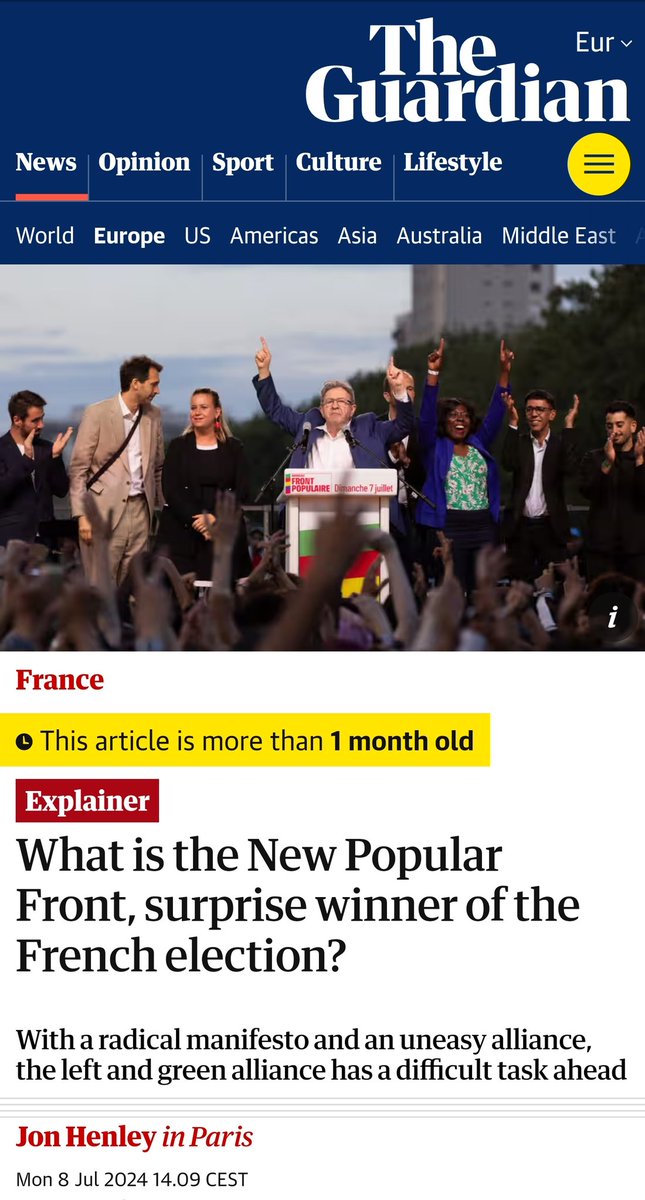 You'll remember that on the 7th of July France held elections that Macron lost badly, and which the left's "New Popular Front" won. https://t.co/057y50894z