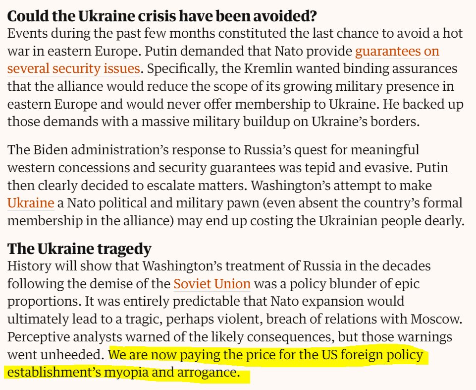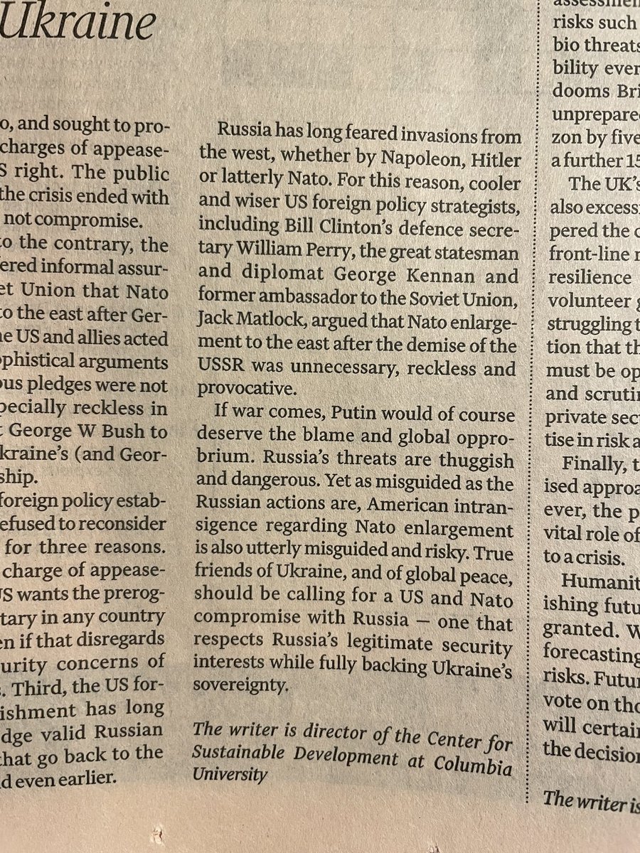 This is famous economist Jeffrey Sachs writing right before war broke out a column in the FT warning that "NATO enlargement is utterly misguided and risky. True friends of Ukraine, and of global peace, should be calling for a US and NATO compromise with Russia."