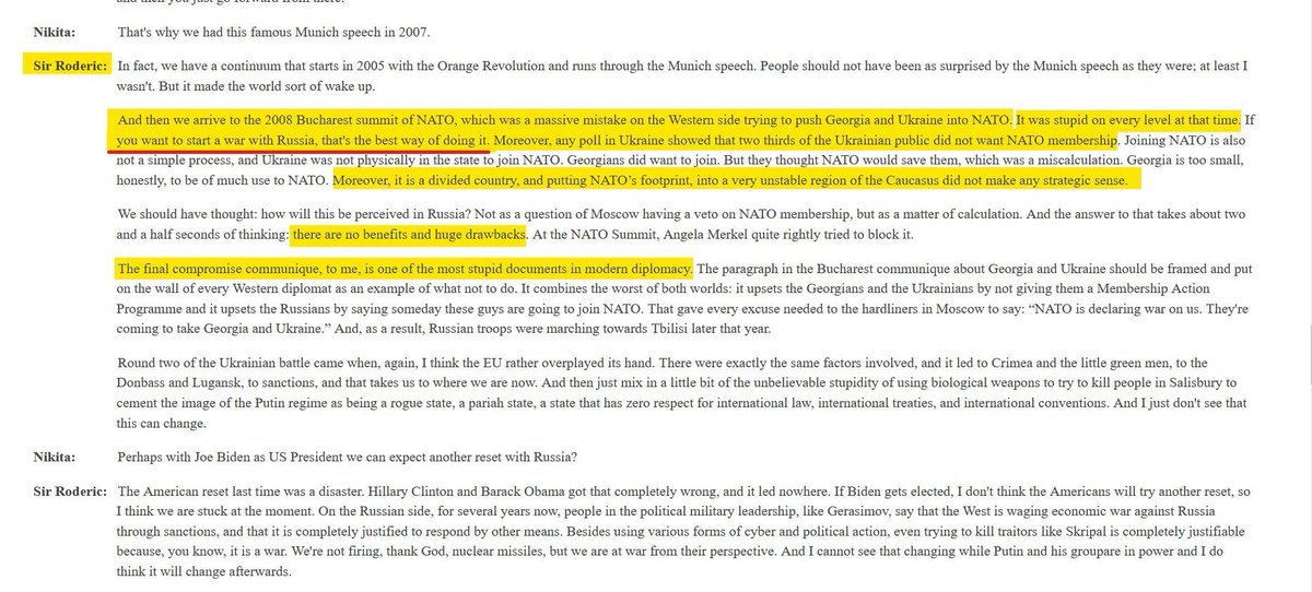 This is Sir Roderic Lyne, former British ambassador to Russia, warning one year before the war that " [pushing] Ukraine into NATO [...] is stupid on every level." He adds "if you want to start a war with Russia, that's the best way of doing it."