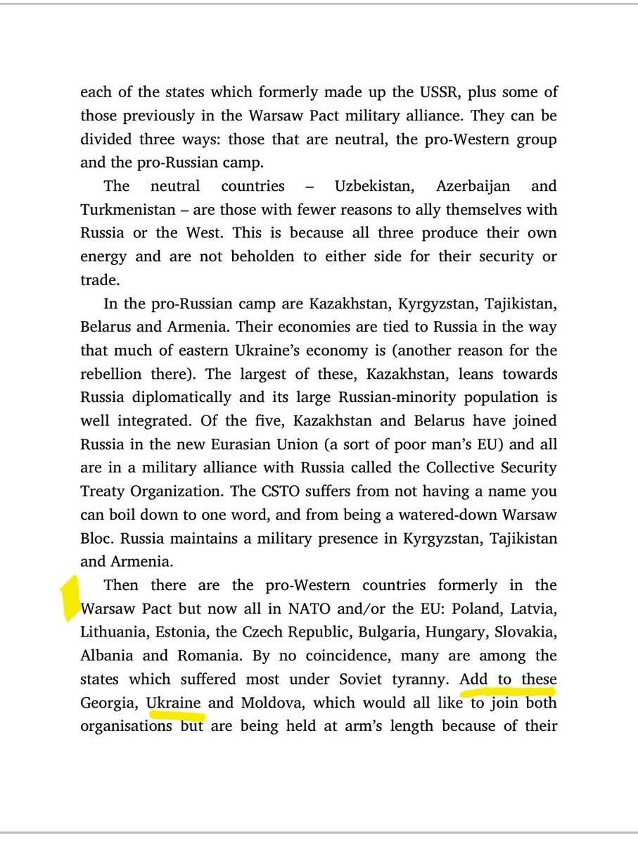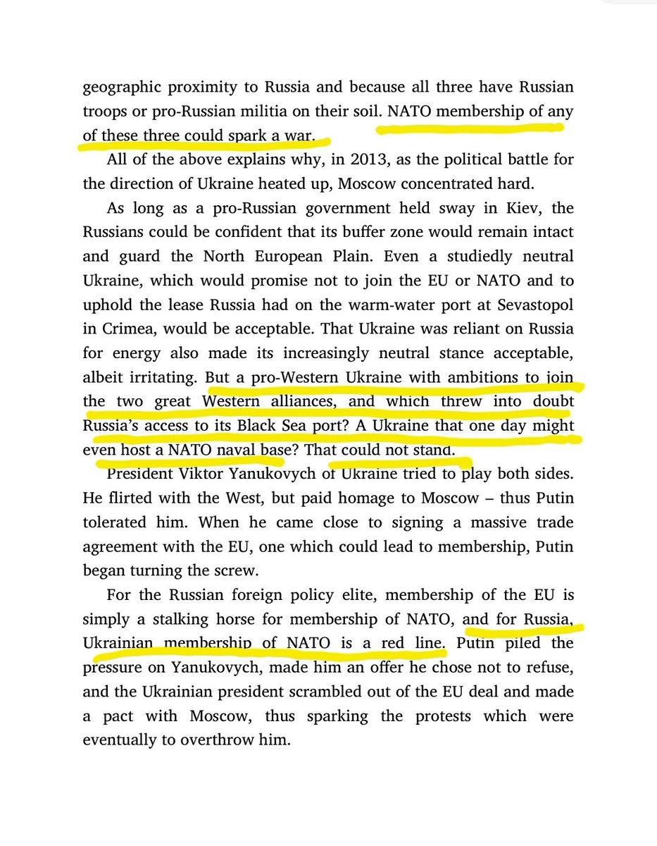 This is British journalist @Itwitius, former Sky News foreign affairs editor, in his 2015 book Prisoners of Geography: for Russia "a pro-Western Ukraine with ambitions to join [EU or NATO] could not stand" and "could spark a war".