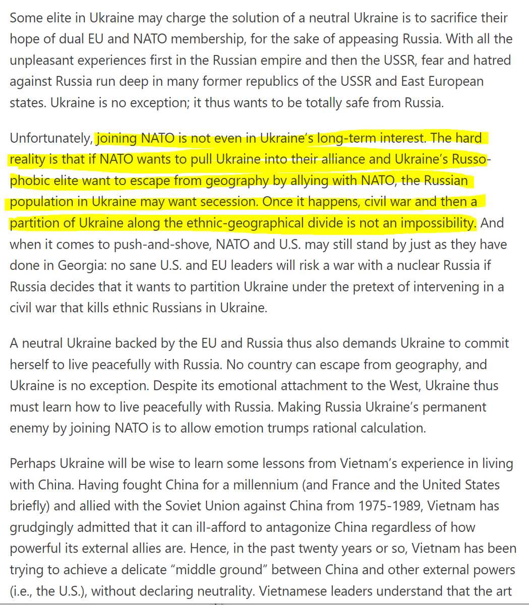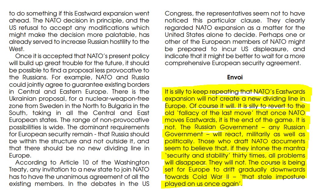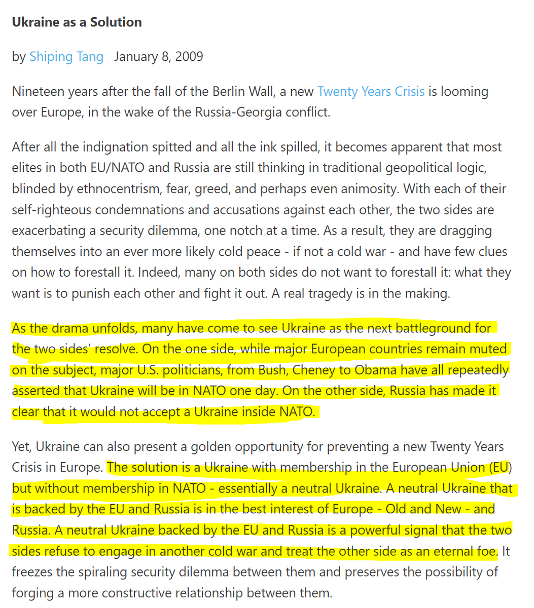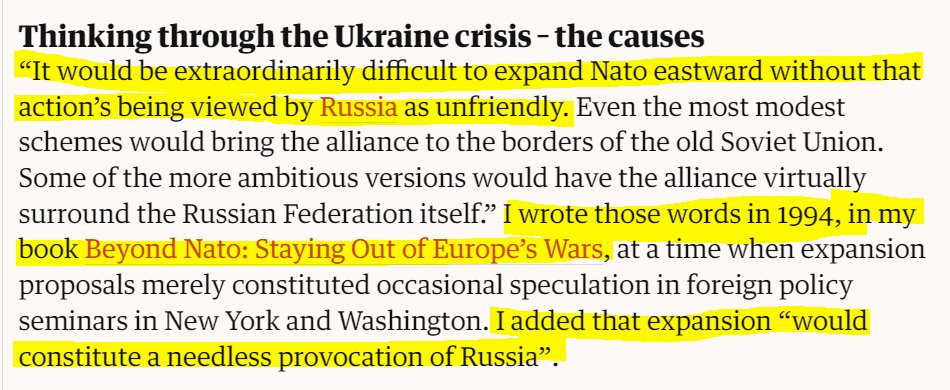 Then there's Kissinger, in 2014 ⬇️ He warned that "to Russia, Ukraine can never be just a foreign country" and that it therefore needs a policy that is aimed at "reconciliation". He was also adamant that "Ukraine should not join NATO".