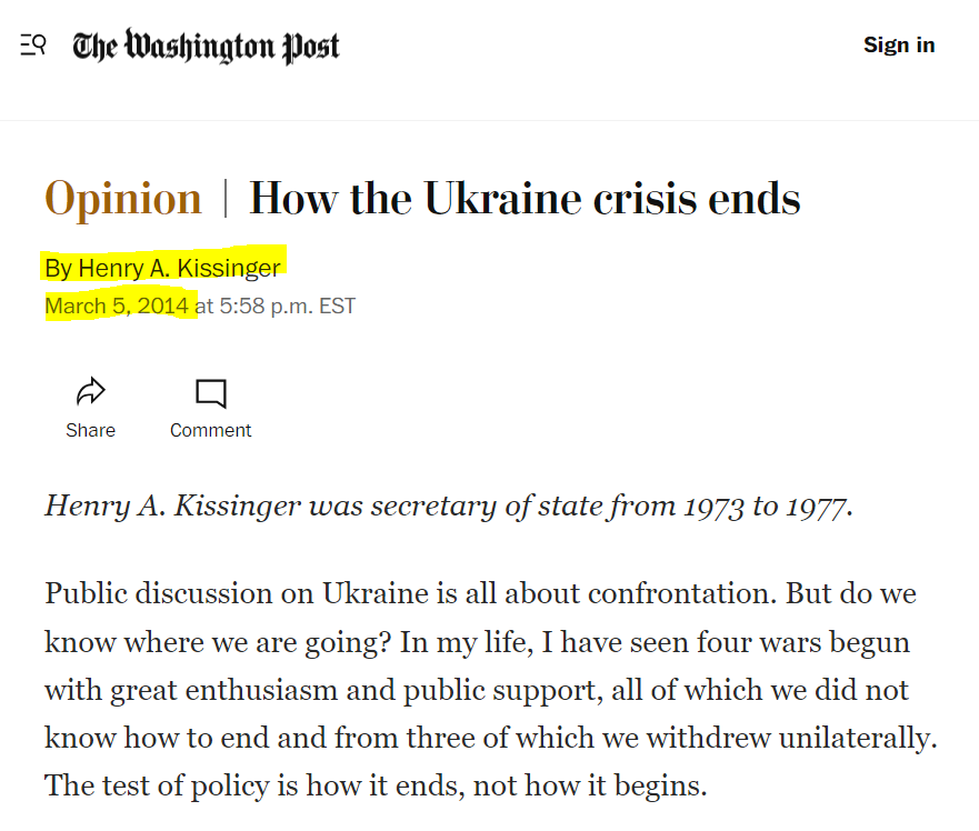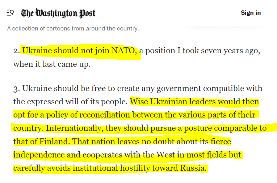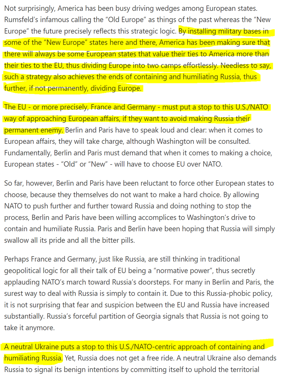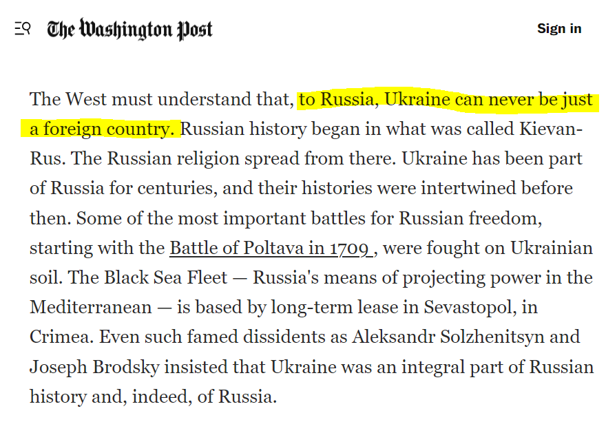 Then there's Kissinger, in 2014 ⬇️ He warned that "to Russia, Ukraine can never be just a foreign country" and that it therefore needs a policy that is aimed at "reconciliation". He was also adamant that "Ukraine should not join NATO".