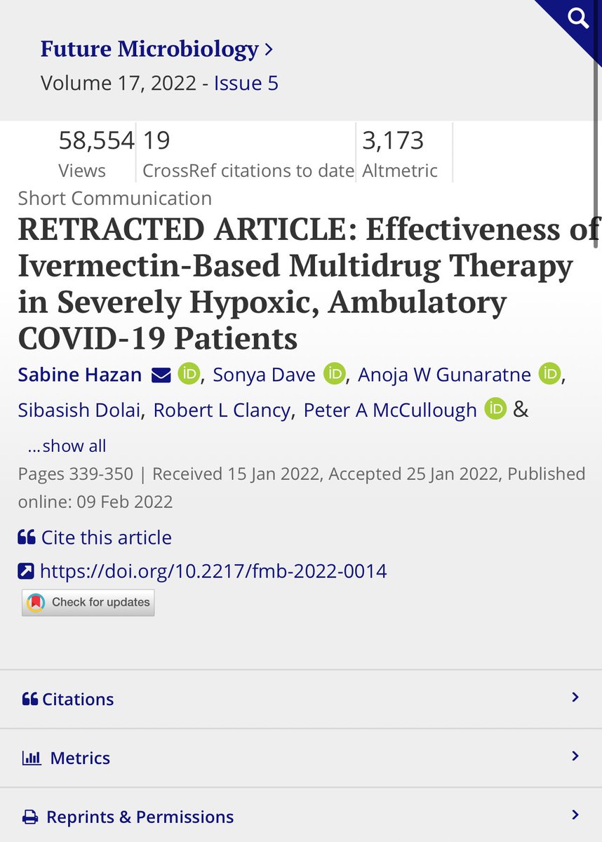 To add fuel to the fires!!! Beware all papers with IVM are getting retracted @exosome Including my own yesterday without due process and without showing us the reviewer’s comments or telling us who reviewed it. Too exhausted from the winds and fire in Malibu to deal with this today BUT MARK MY WORDS… When I pick up my wind…. THE 💩IS GOING TO FLY EVERYWHERE… First, they retracted my hypothesis, and next an OBSERVATIONAL STUDY authored by Dr. Thomas Borody and Dr Robert Clancy and @Progenabiome team. @US_FDA BEWARE I will be calling.… IF MY DATA IS NOT GOOD ENOUGH TO STAY IN A JOURNAL REMOVE FROM THE MARKET ALL THE DRUGS I HELPED BRING TO MARKET FOR PHARMA ( especially the @pfizer drugs) .… I AM NO LONGER PLAYING NICE…. YOU WILL HEAR ME #ROAR @DrJBhattacharya @AzadehKhatibi @RupaliChadhaMD @SageListener @IamBrookJackson @Brookemillermd @foxxxyroxxxy @SmithWust @MartyMakary @mark_ginkel @DrMarkGhalili @MartyMakary @AaronSiriSG @RobertKennedyJr @RWMaloneMD@LeahHoustonMD @EpochTimes @TuckerCarlson @joerogan @drdrew @JanJekielek @goddeketal @drsimonegold @stella_immanuel @stkirsch @beefinitiative @ninonaprea @MarioNawfal @TaraBull808 @liz_churchill10 @TexasLindsay_ @TheChiefNerd @newstart_2024 @btysonmd @GeorgeFareed2 @briancremy @LaLaRueFrench75 @TINAHILLSTROM1 Interference with research affects EVERYONE… Papers that passed peer review and were reviewed by Drs of similar specialties should NEVER BE RETRACTED. The fact that nonscientists can retract papers is unbelievable. #PROVEMEWRONG IS WHAT SCIENCE IS ABOUT. THIS IS WAR... #takebackmedicine is my plan Let me be clear I do not give a 💩 if all my papers are retracted. I do not give a 💩what people say about me. I embarked on treating COVID patients to see the truth EVEN IF JUST FOR ME… I treated patients and LOST NO ONE BECAUSE GOD IS PAYING ATTENTION TO MY ACTIONS. However, it seems that my BIGGEST MISSION IS TO EXPOSE THE CORRUPTION IN OUR MEDICAL SYSTEM and I WILL…… #WATCHMEROAR Sincerely, HURRICANE HAZAN