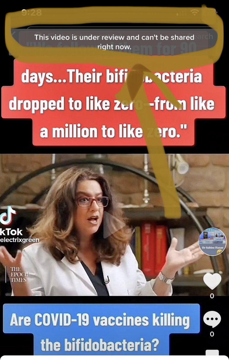This tik tok had close to $1 million views last night and over 25k retweets and, in 24 hours, was pulled down @JanJekielek Do we still believe this is about a virus? They who want to control don’t want you to make discoveries. I tried to repost it, and it says “ under review” … UNDER review by WHO? I am leading the Microbiome Research clinically. Who else knows what Blautia or Roseburia does or what they are, or is it normal to have them? Please teach me... Here’s my advice; EDUCATE YOURSELF to stay alive. This is NOT about health… If it was... “discovering the loss of Bifidobacteria in severe covid patients would have hit mainstream media.” They would have pushed vitamins, exercise, and gut health for you to survive Covid. This is about control. This is about removing your freedom to speak and freedom to choose. Unite to fight for the truth. Stop the division. Your politician will not save you. @Progenabiome was created to empower you, to #letdrsbedrs, to #Savethebif. This is my life’s mission NOW!! The moment they interfered with my research, they woke me up, and I am a hurricane in research. #WATCHME #ROAR.. No Dr will innovate if this continues... No Dr will try a drug or a treatment if medicine continues to be political. We cannot afford to interfere with research because we all will be patients. Research needs to be pure and unbiased and we MUST be able to challenge the narrative.