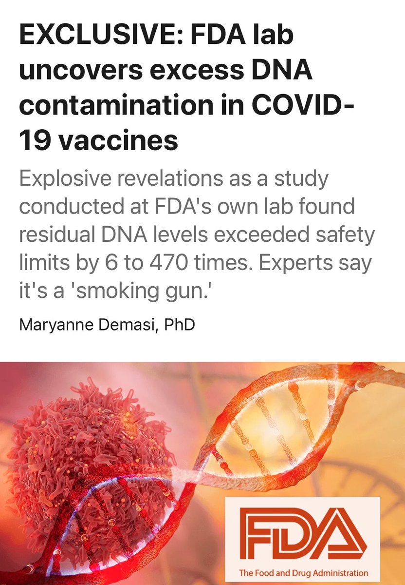 The FDA knew for years the dangers of MRNA. Lawyer Tom Renz has a 2006 document where the FDA acknowledge the MRNA gene therapy products had the potential to cause cancer in the long term. Now confirmed by their own lab findings of high level DNA contamination in the shots. The MRNA platform needs to be shut down.