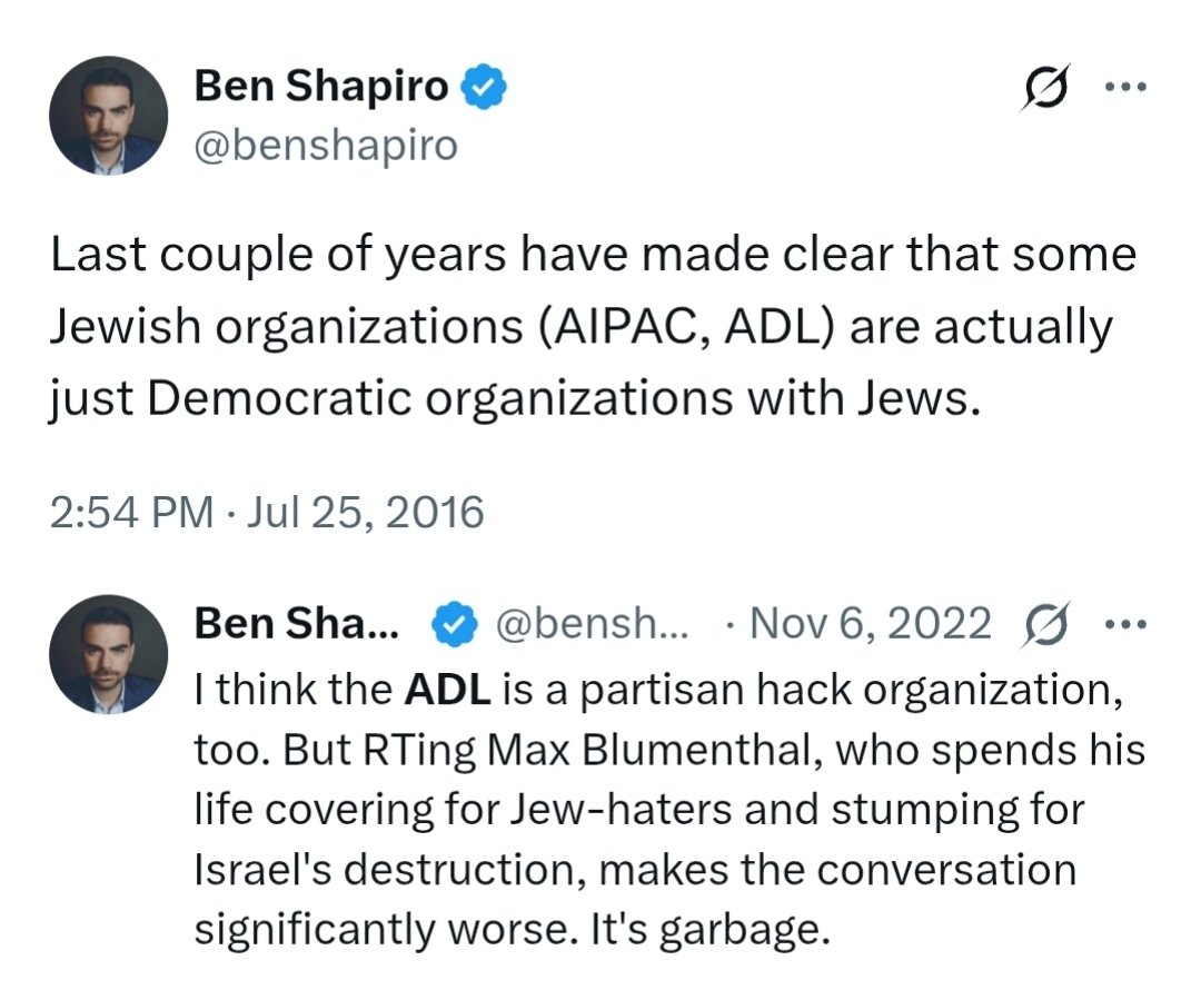 15/ if you hadn't noticed, jews on all sides run a trick: they accuse other jews they don't agree with of not being jewish. The antizionist Torah jews say that israel isn't jewish. Likewise, Ben Shapiro will tell you the ADL isn't jewish. See? Don't blame jews for what jews do! https://t.co/mZL4yeAZm5