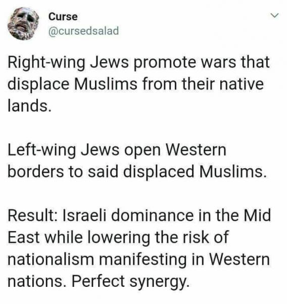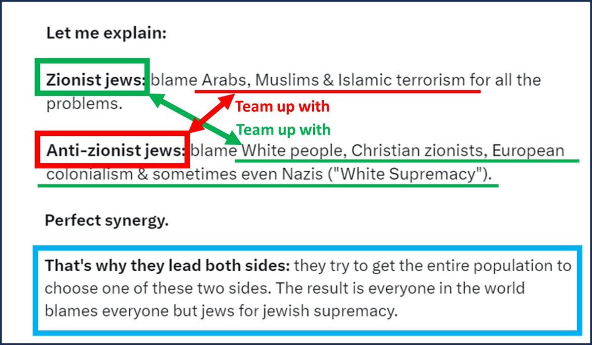 16/ The scheme: jews take various sides of an issue—in this case israel & zionism—but all sides are careful to not blame jews or judaism. That way, jews remain victims & deflect blame to other groups, leaving them free to continue their jewish supremacy under special protection. https://t.co/0brAA0V9BR