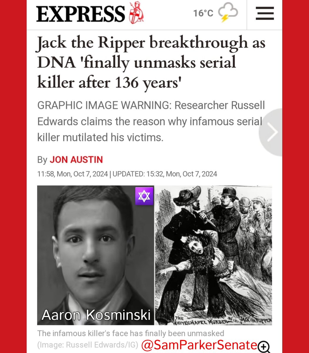 🚨 SURPRISE! JACK THE RIPPER UNMASKED (and he's a you-know-who) ▪️New DNA evidence has conclusively shown that one of the original suspects, Aaron Kosminski, was the infamous murderer. Other interesting findings: ▪️His family were Russian jews who fled Russia after 3 jews--Vera Figner, Hesya Helfman & Ignacy Hryniewiecki--organized the conspiracy to assassinate Tsar Alexander II. ▪️His brother Isaac Abrahams was a prominent member of the freemasonry lodge set up for jewish immigrants in Britain, and it's suspected this connection helped Aaron evade justice. ▪️He was acting out the notorious Masonic blood oaths "giving descriptions of mutilations, such as cutting throats, removing tongues, and 'That my left breast had been torn open and my heart and vitals taken.'" ▪️London officials were reluctant to arrest Kosminski b/c they didn't want to be accused of antisemitism or facilitate negative fallout against jews. ✡️ How ironic is it that jewish assassinations in Russia led to jewish ritual murders in Britain, and that fears of "antisemitism" prevented the authorities from delivering appropriate justice? Absolutely wild. Could never happen today, right?
