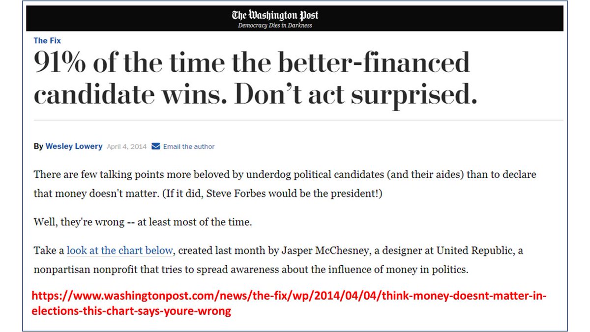 19. Winning political office is mostly about fundraising, not ideas, b/c money buys the media that influences The People in the info war. Remember, the Framers didn't want a gov where tyranny could easily arise & they knew the danger a few rich & powerful designing people posed.