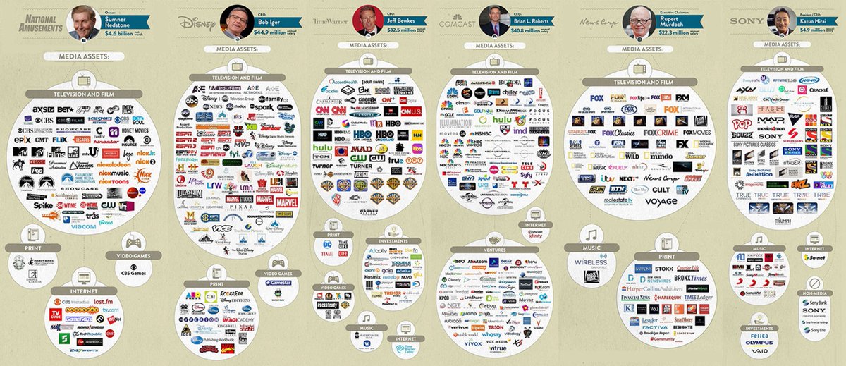 16. Now let's talk "men acting in concert." For example, the media: Most are now aware that 6 companies control over 90% of the information we're exposed to: