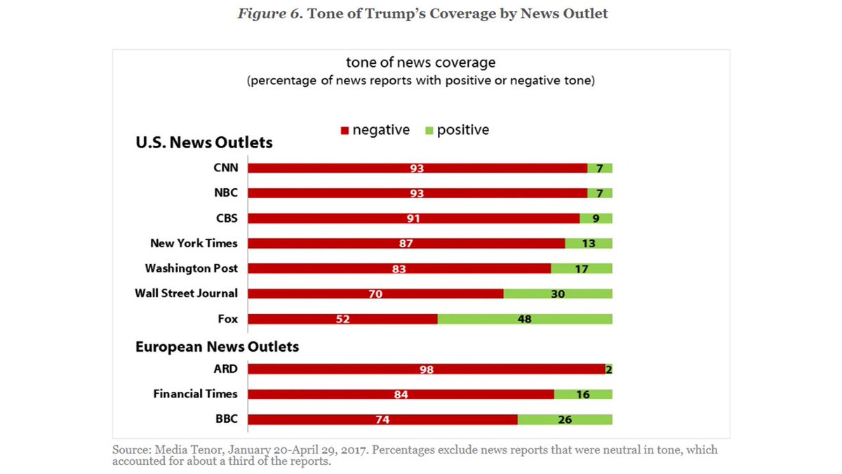 18. Here's the tone of coverage for @realDonaldTrump's 1st 100 days. CNN led the pack w/93% negative coverage! Astonishingly, it might be even higher now. This slanted media coverage is swaying MILLIONS of people. For the office of President, the Framers wanted to mitigate this.