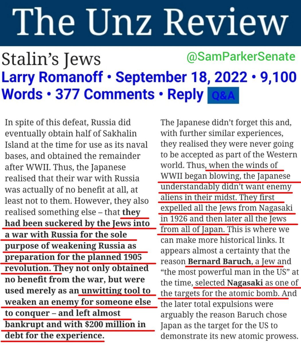 🧵2/ Pre-WW2 Japan: War with Russia, The Protocals, and Another Jewish Expulsion To understand why Pearl Harbor happened, we have to rewind the clock back to the Russo-Japanese War of 1904-1905. The European Rothschilds had curiously loaned both Russia and Japan $200 million to purchase weapons from their Rothschild-owned arms factories in Germany! (jews funding & supplying both sides?! Never!) Two of the most important results of this war were that Russia was left weakened & vulnerable for the Bolshevik Revolution looming right around the corner, and Japan was left bankrupt, jaded and awakened to being taken advantage of by jewish influence (see below). Sidebar: We also see now how the current Russia-Ukraine war--pushed by jews Antony Blinken & Victoria Nuland, financed by Blackrock jews and their zionist agents in the US congress, prosecuted by Ukrainian jew Volodymyr Zelenskyy--has left Russia weakened once again, such that it is unable to adequately prop up the Assad regime in Syria as it did earlier in the Syrian Civil War, which Donald Trump noted today (see below). The gameboard is being further cleared for Greater Israel & a showdown with Iran--who will shortly see its own supply lines to Hamas & Hezbollah cut off. This "education" of the Japanese after being left disillusioned from the 1905 war, led to The Protocols Of The Learned Elders of Zion eventually gaining widespread circulation & traction in Japan after WW1. (Isn't it interesting that the Protocols were first leaked to the world in 1905, the same year as the Russo-Japanese War?). By 1926, Japan expelled the jews from Nagasaki & then all of Japan! Later, it would be Bernard Baruch who would suggest Nagasaki as a target for the atomic bomb.