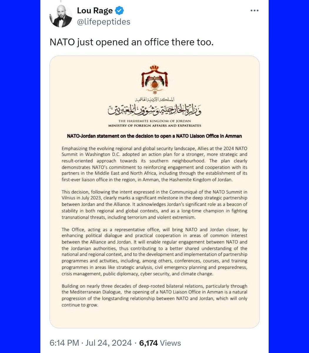 🧵3/ NATO subsequently opened an office in Jordan in July & provided military support to israel in October during its attack on Iran. HTs: @lifepeptides & @MenchOsint