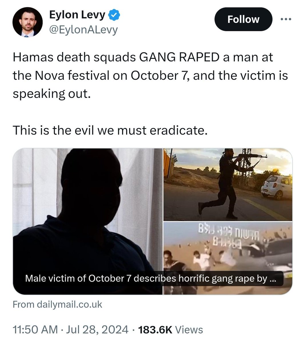 🧵3/ So how did Israeli propagandists & mouthpieces distract from this? By accusing Palestinians of gang-raping an Israeli man on October 7th! EVERY ACCUSATION IS A CONFESSION! Learn their ways, friends. https://t.co/WygCg7DRgi