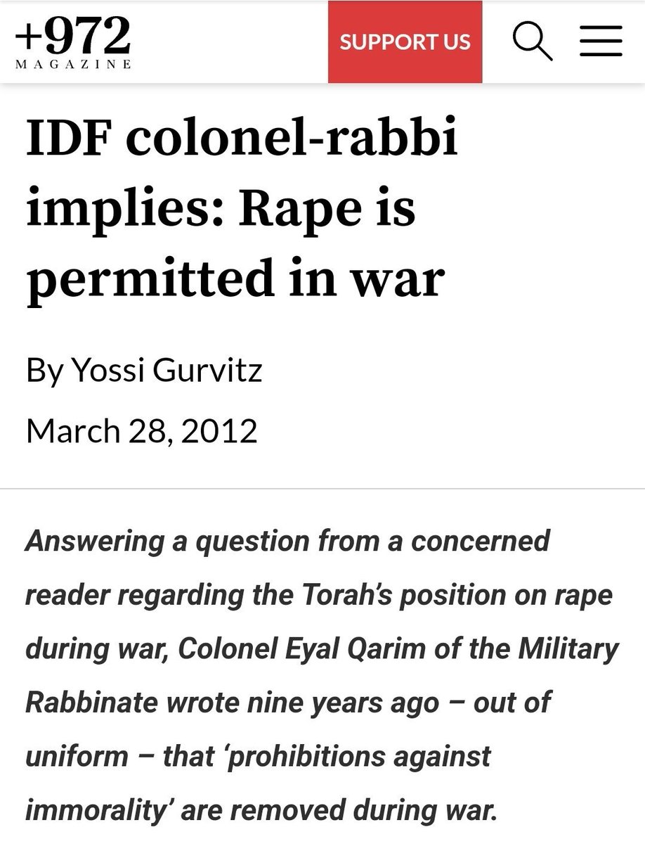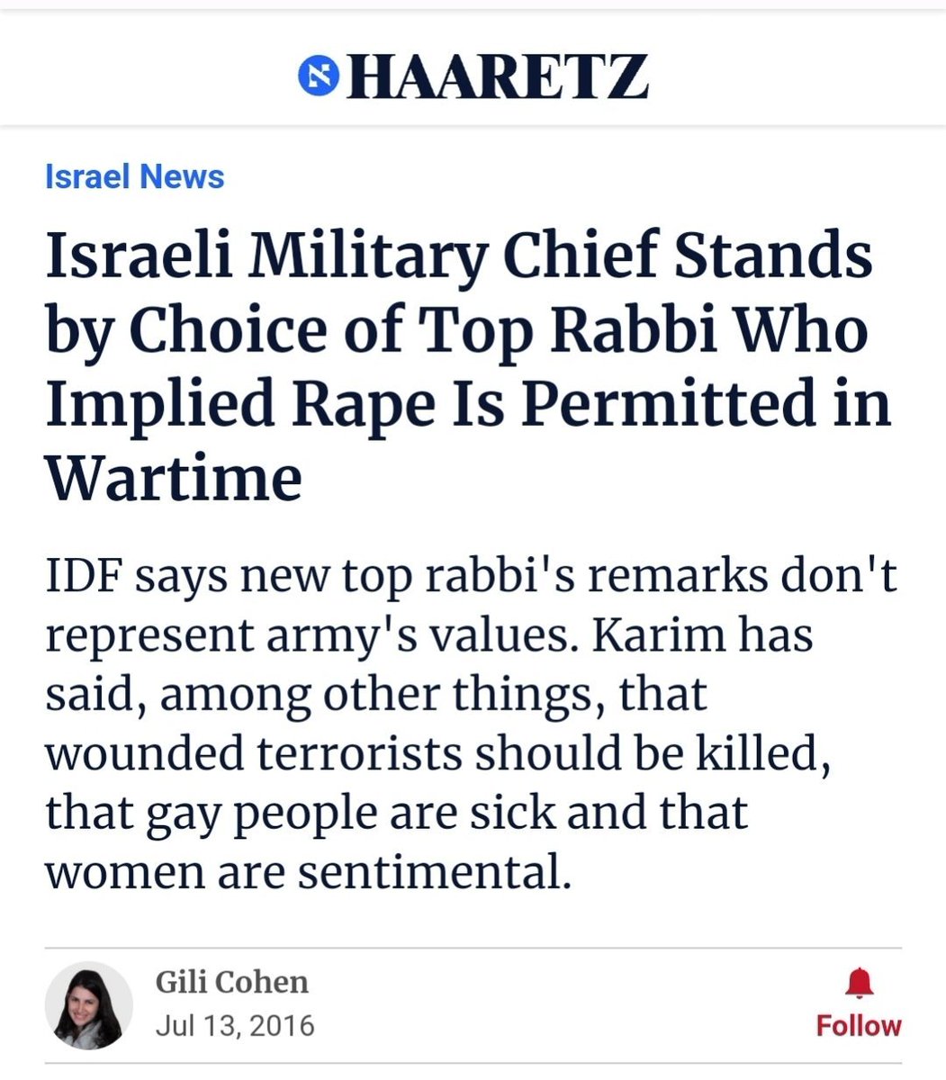 🧵4/ "Israeli Military Chief Stands by Choice of Top Rabbi Who Implied Rape Is Permitted in Wartime." Imagine remotely believing this: