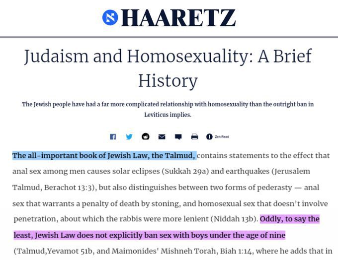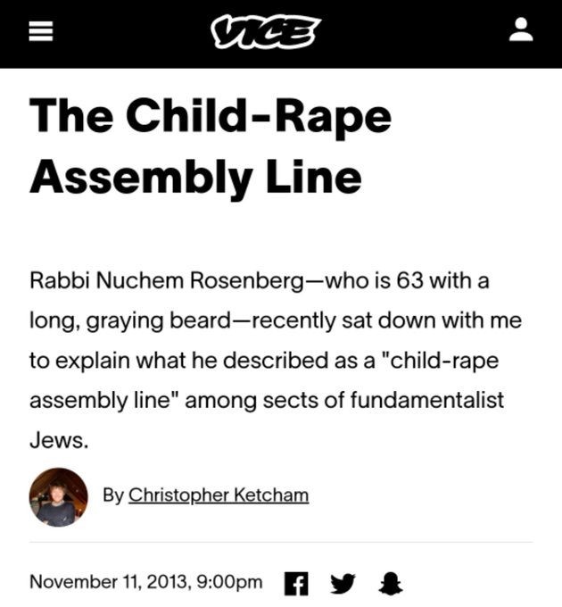 🧵5/ "The Child-Rape Assembly Line" This article alleges that perhaps 50% of all jewish boys are raped in these populations.