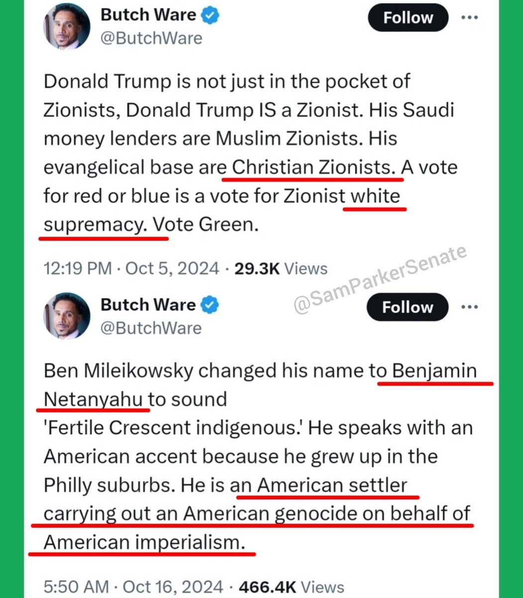 🧵3/ Now that we know Jill Stein's primary concern is protecting israeli & jews, let's take a closer look: Stein says zionism isn't judaism, and blames the problems on White supremacy & colonialism. She teams up with the Black Muslim Butch Ware, who blames the problems on Christian zionists, White supremacy & American (European) settlers. He says what's happening in Gaza is an American genocide for the American empire, painting Netanyahu as a White American rather than a jewish israeli. This is literally a textbook example of the anti-zionist jewish side of the Organized Jewish Supremacy dialectic, in which "anti-zionist" jews ally with Blacks & Muslims to blame Whites & Christians for what jews are doing.