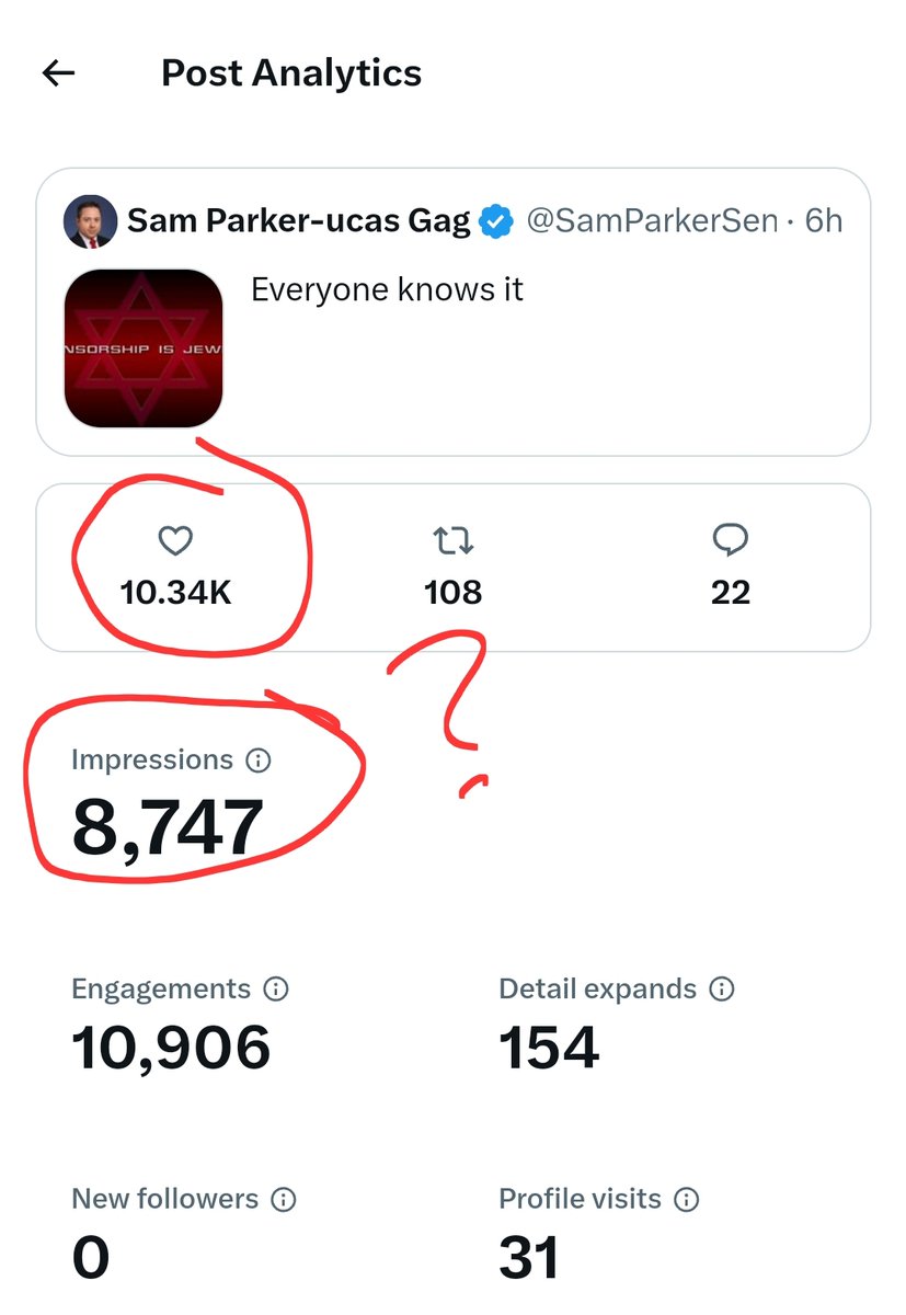 What sort of voodoo are you guys doing to my account, @elonmusk @x @Support? 10.2k likes but only 5600 views? What's going on?! cc: @cstanley I've even archived it. This is *NOT* a manipulated image. https://t.co/InGYGhJAH8