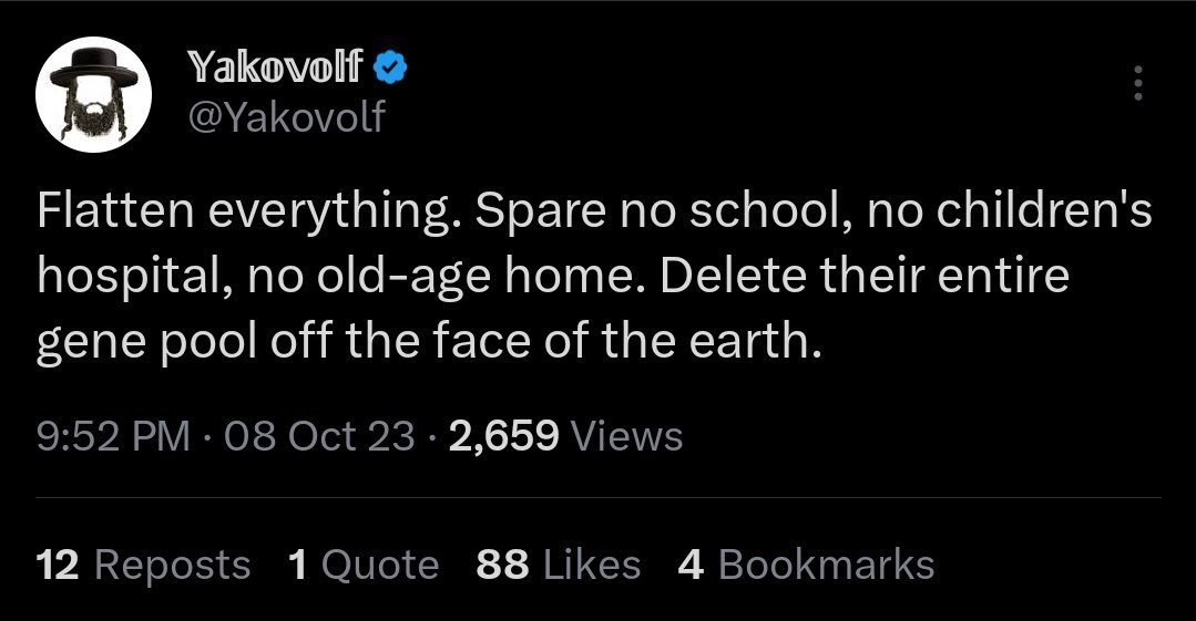 📢🇵🇸 CROWDSOURCE CALL TO ACTION: 1. Post screenshots & links to all prominent Twitter accounts calling for the destruction &/or genocide of Gaza in the comments below. 2. Hashtag it #ZionistPrivilege 3. Tag @ElonMusk Let's get one massive thread. I'll start: https://t.co/VOzHUNSl6y