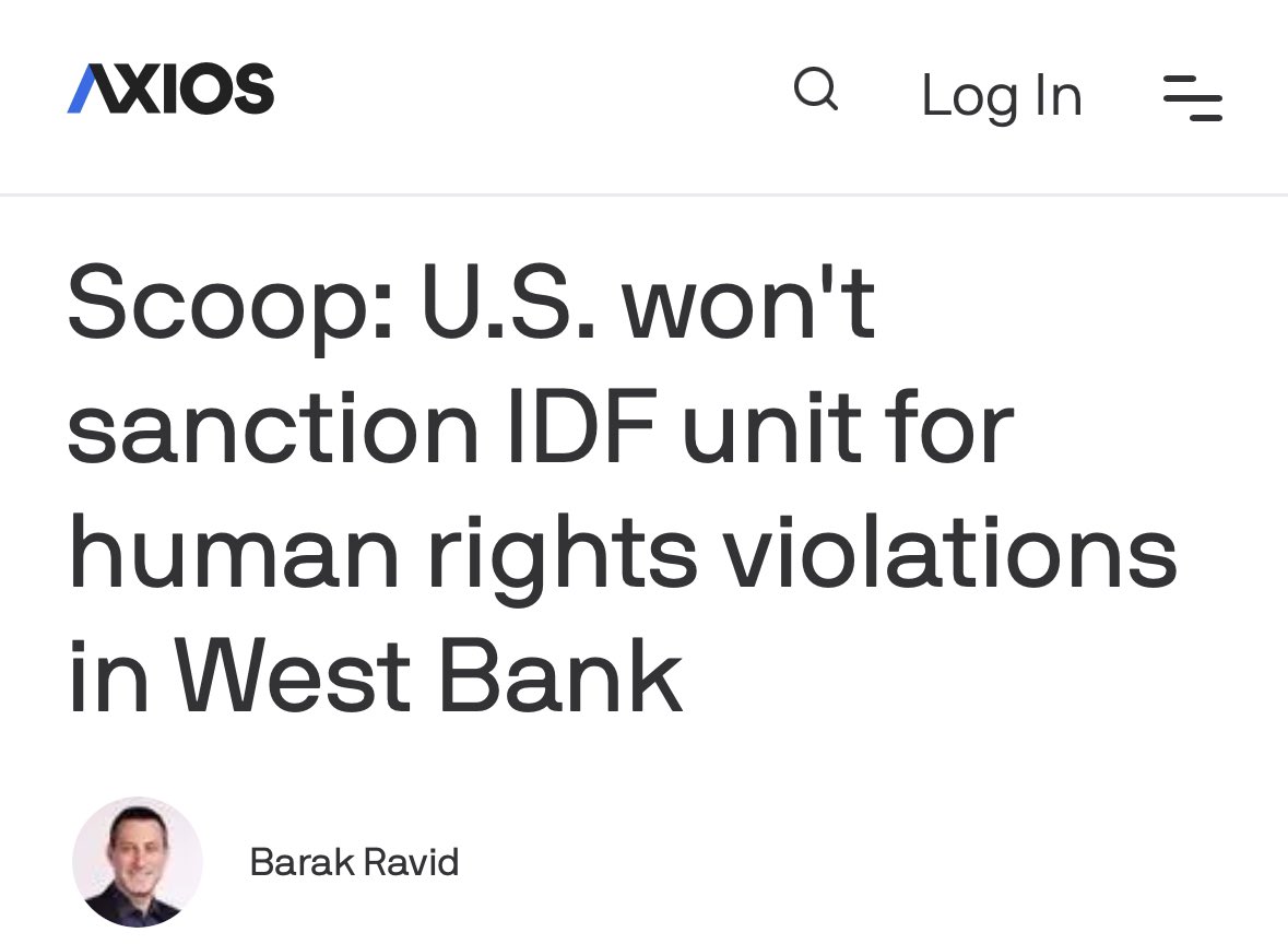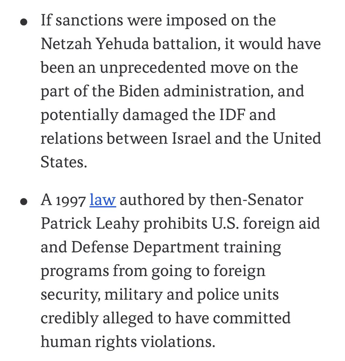 The U.S. cannot sanction the IDF unit because it would then have to withhold weapons / military aid to Israel. https://t.co/yRqf0EpBWY