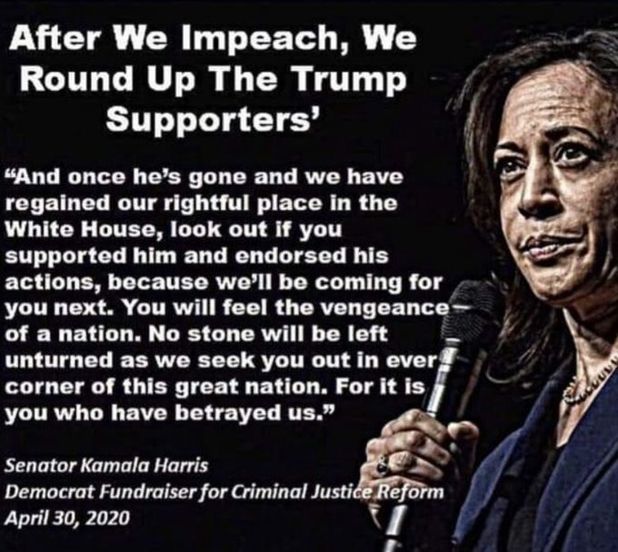 Yes Kamala Harris really said this. She is a Marxist communist totalitarian. She is coming for us. “After we impeach, we will round up the Trump supporters…” She is a Chairman Mao Zedong with lipstick VOTE VOTE VOTE! #MAGA2024 TRUMP https://t.co/IKSb78iJgk