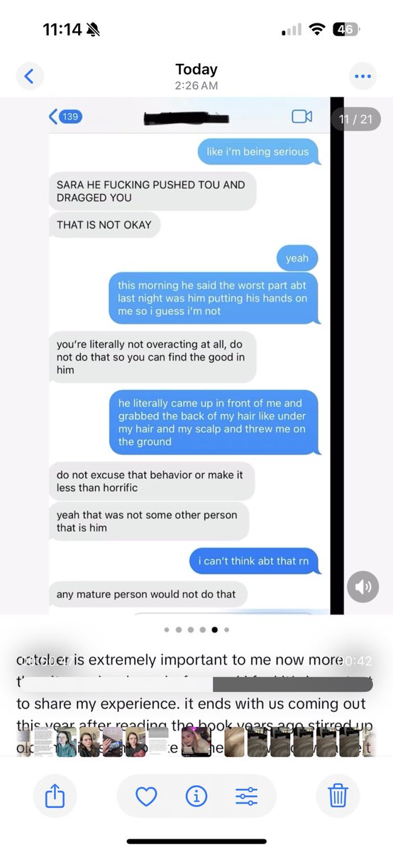 Another victim of Harry, Sara, provided a long detailed video of her experience. I clipped it for the sake of time, but you can find her full video on the TikTok platform. Sara is a DV survivor. She had posted about her DV experience in October of 2024 for DV awareness month. Receipts are of her and her ex. Following this experience is when she was convinced by Harry to share explicit photos of herself, and was told that she was "the only one"